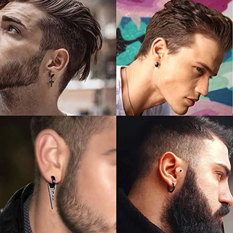 1-15 Pieces Clip on Earrings Set for Men Stainless Steel Black Fake Piercing Earring Mens Hoop Non-piercing Earrings
