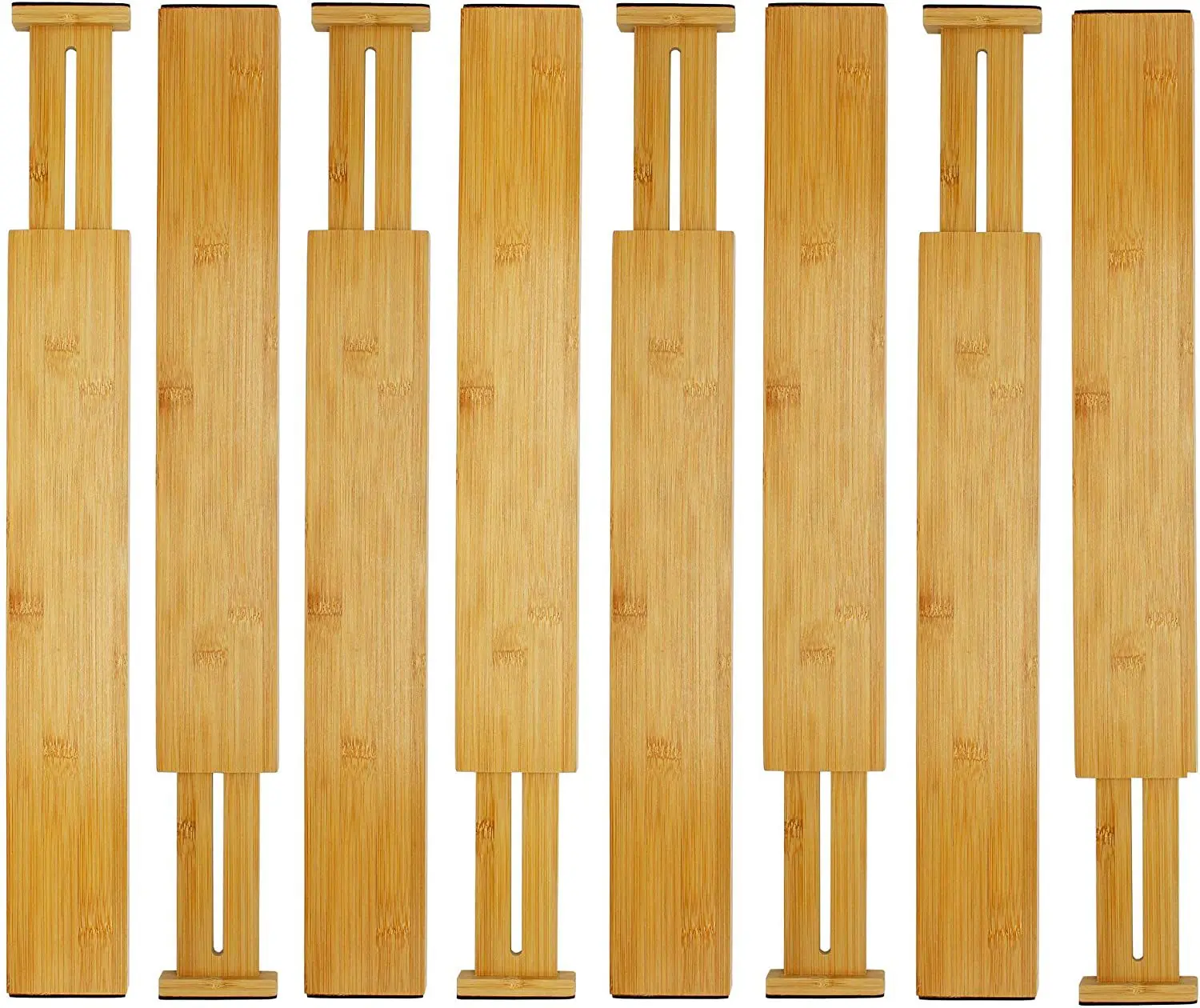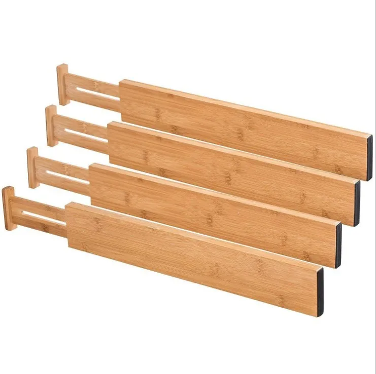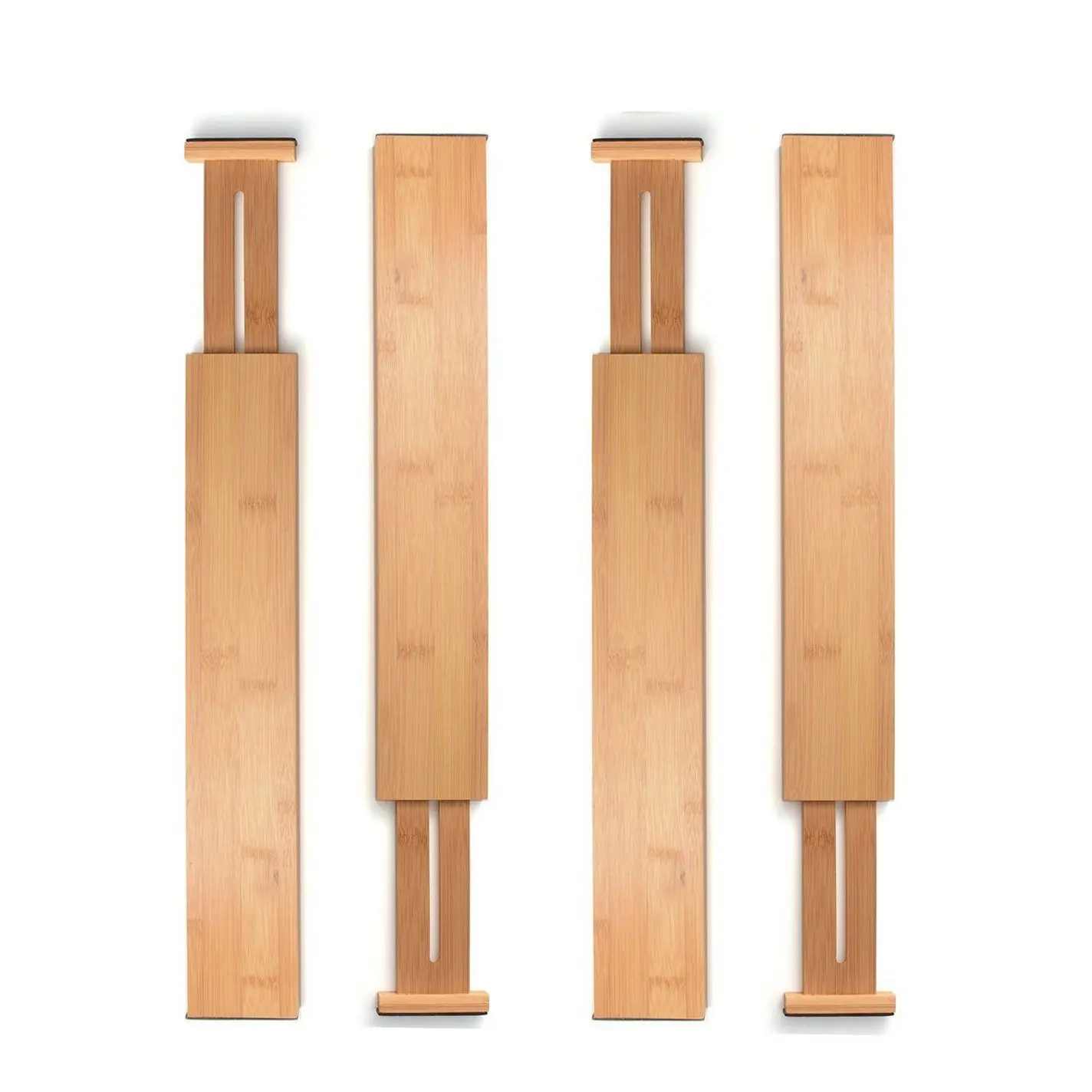 1/2/4Pcs Bamboo Drawer Dividers Organizers Adjustable Expandable Loaded Drawer Separators for Kitchen Bedroom Dresser Organizer