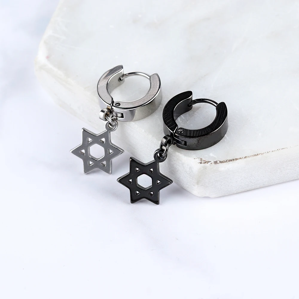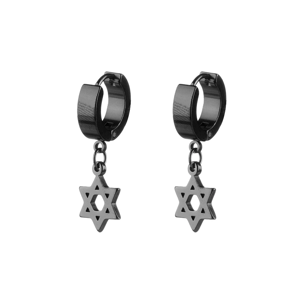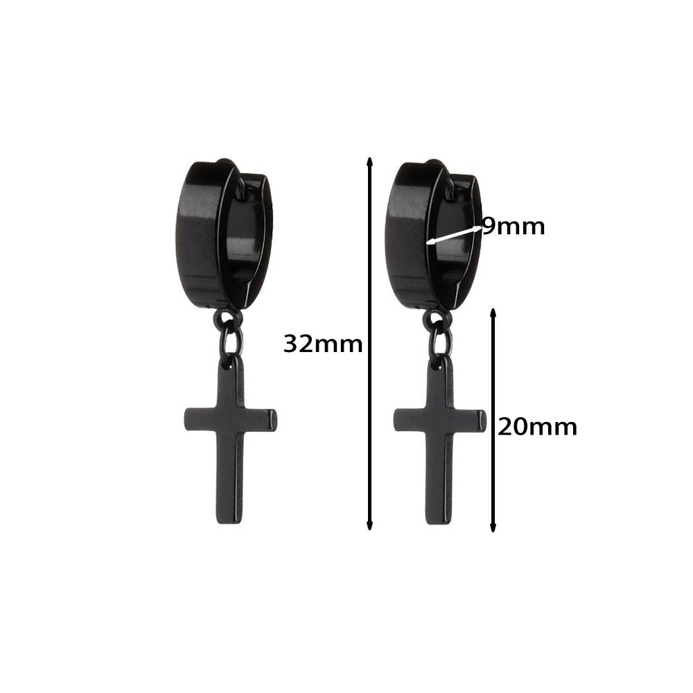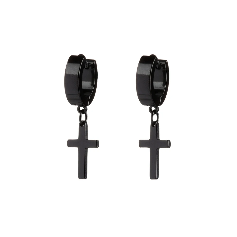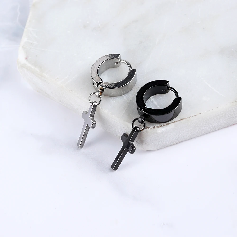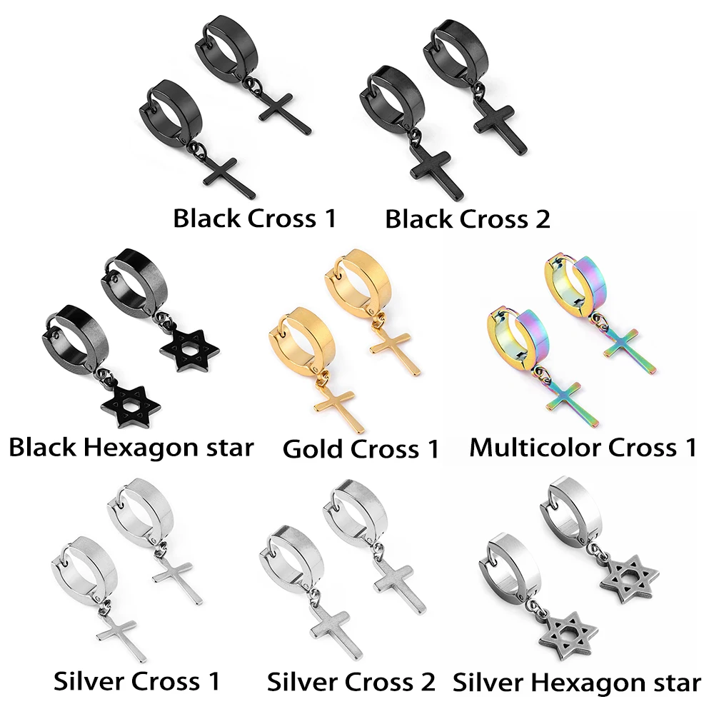 1/2PC Men Punk Cross Stars Dangle Earrings Women Gothic Stainless Steel Cross Ear Stud Earrings Piercing Huggies Pendant Jewelry