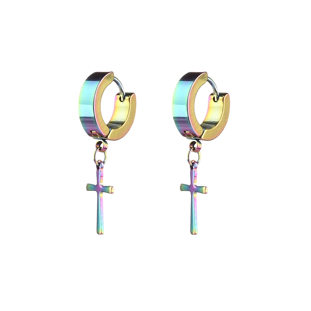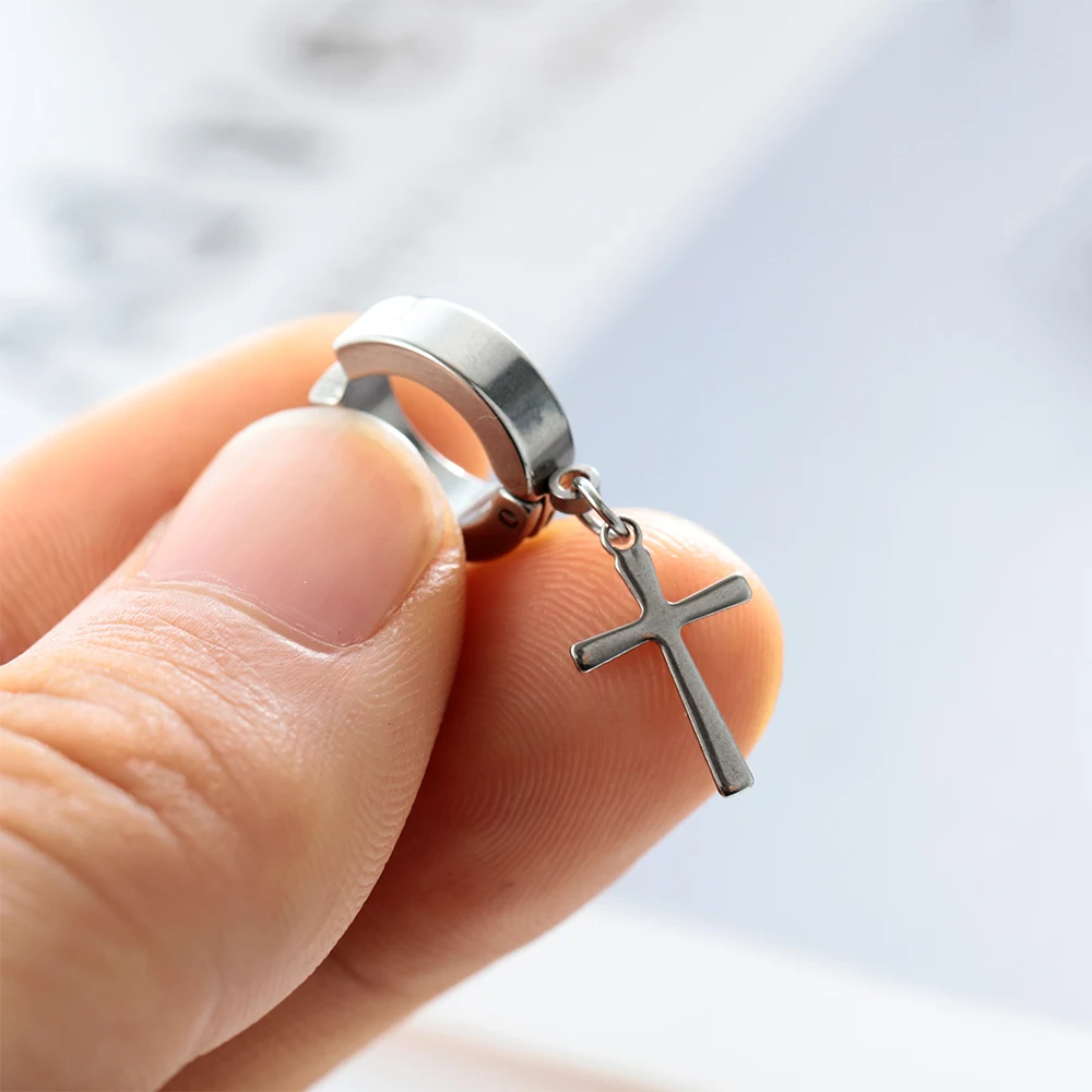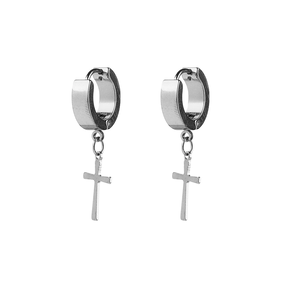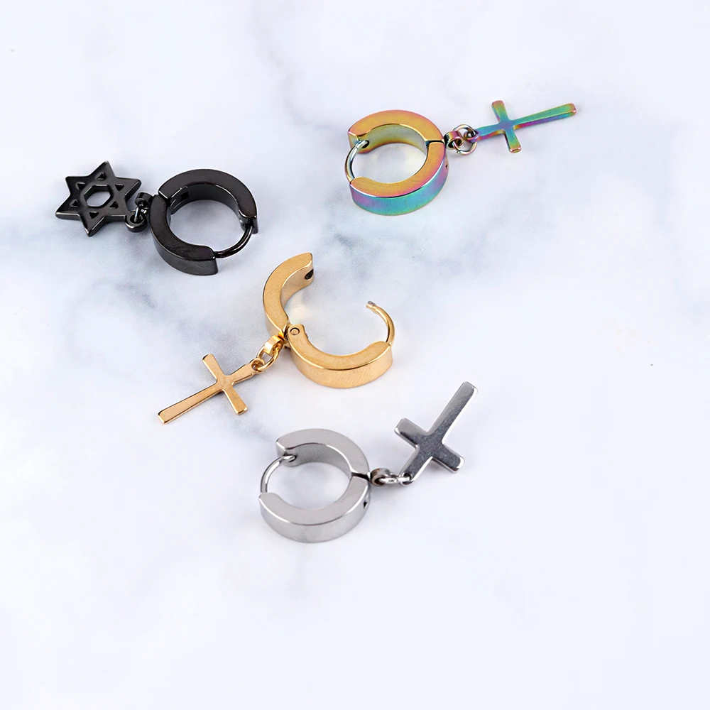 1PC Men Punk Cross Stars Dangle Earrings Women Gothic Stainless Steel Cross Ear Stud Earrings Piercing Huggies Pendant Jewelry