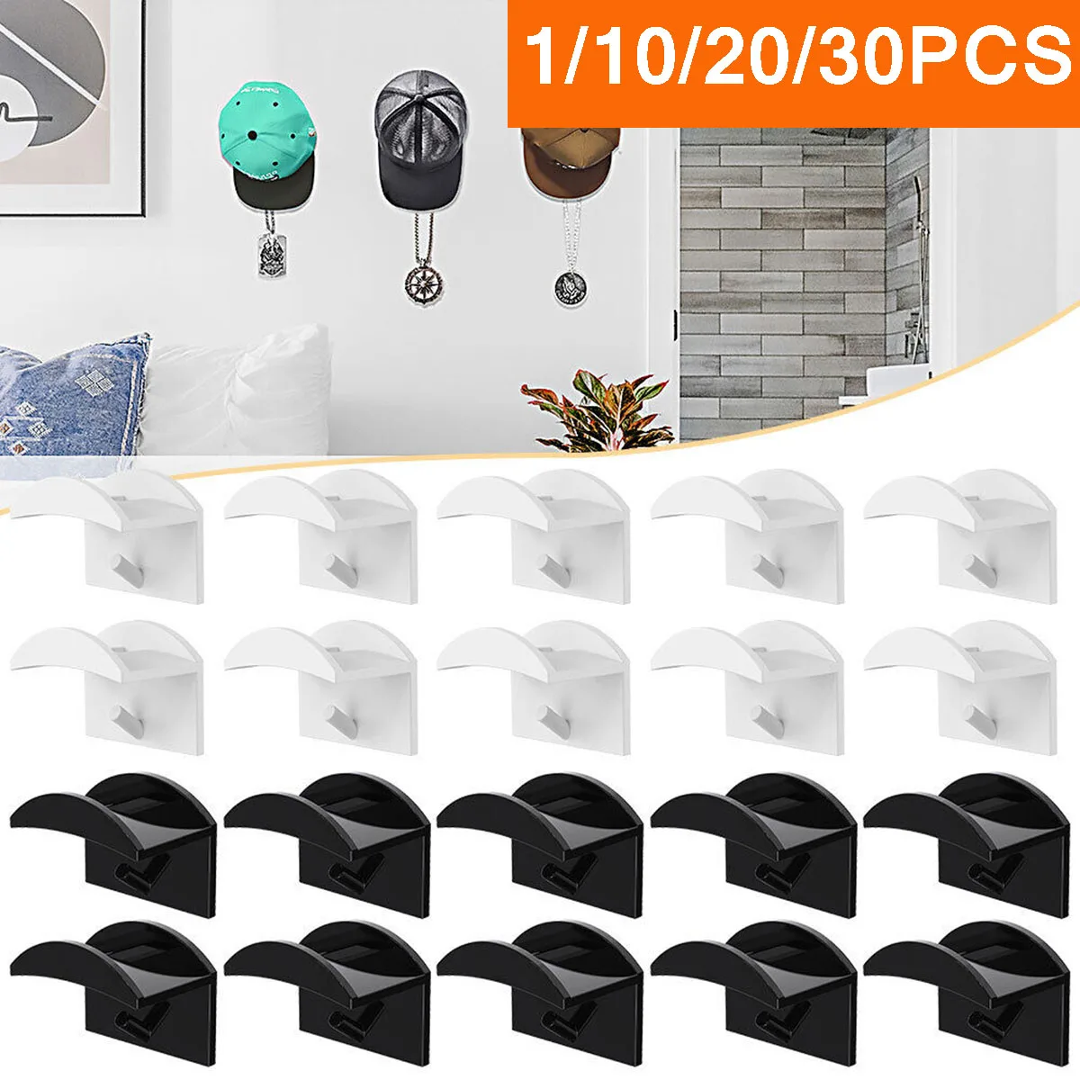 1/5/10/20/30Pcs Adhesive Baseball Hat Hooks Rack Display for Wall Door Cap Holders Closet Storage Organizer Storage Cap Support
