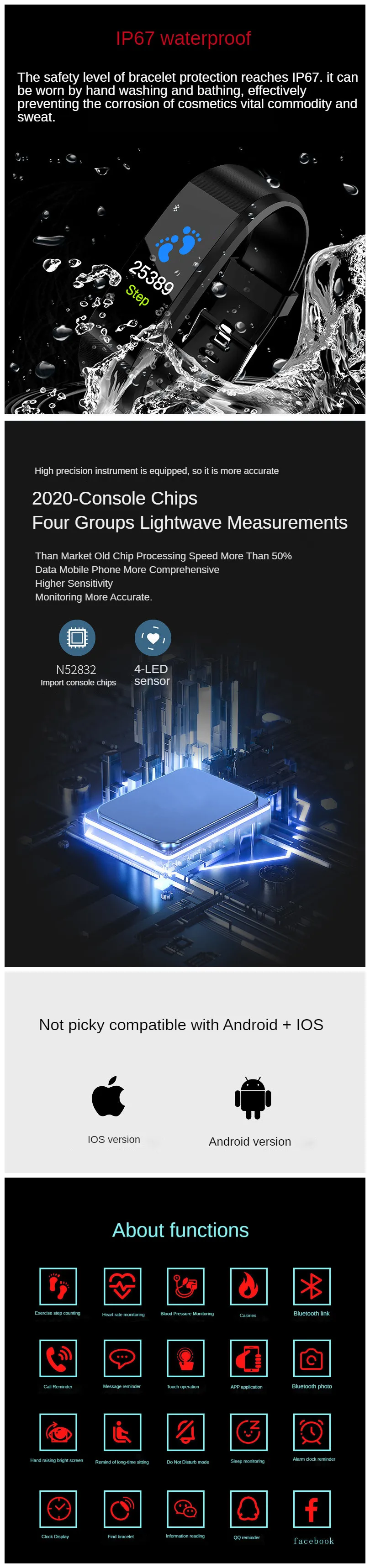 More functions: Find bracelet, Alarm reminder, remote camera, Raise your hand to brighten, Music control,