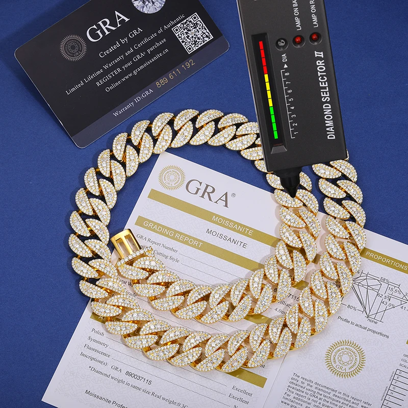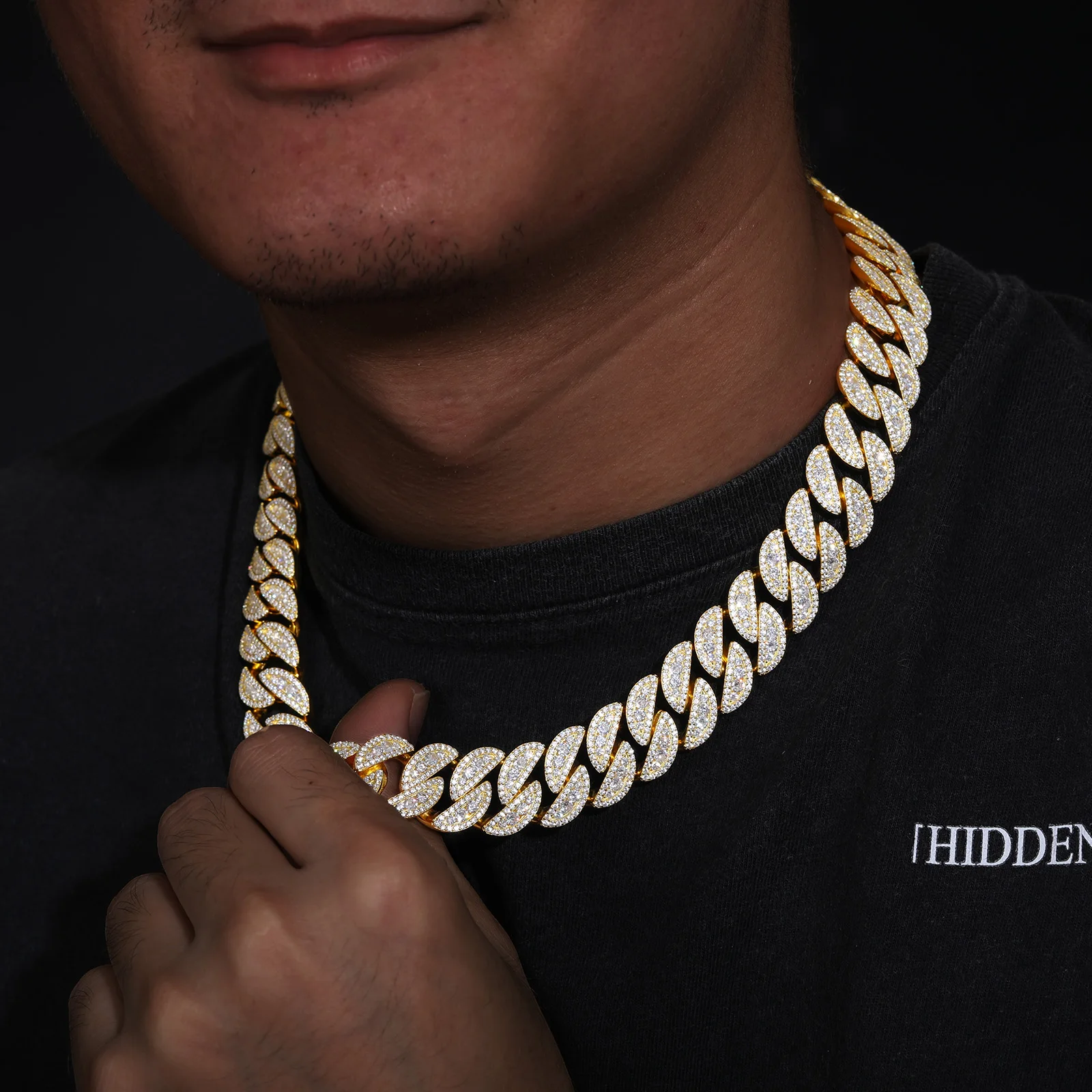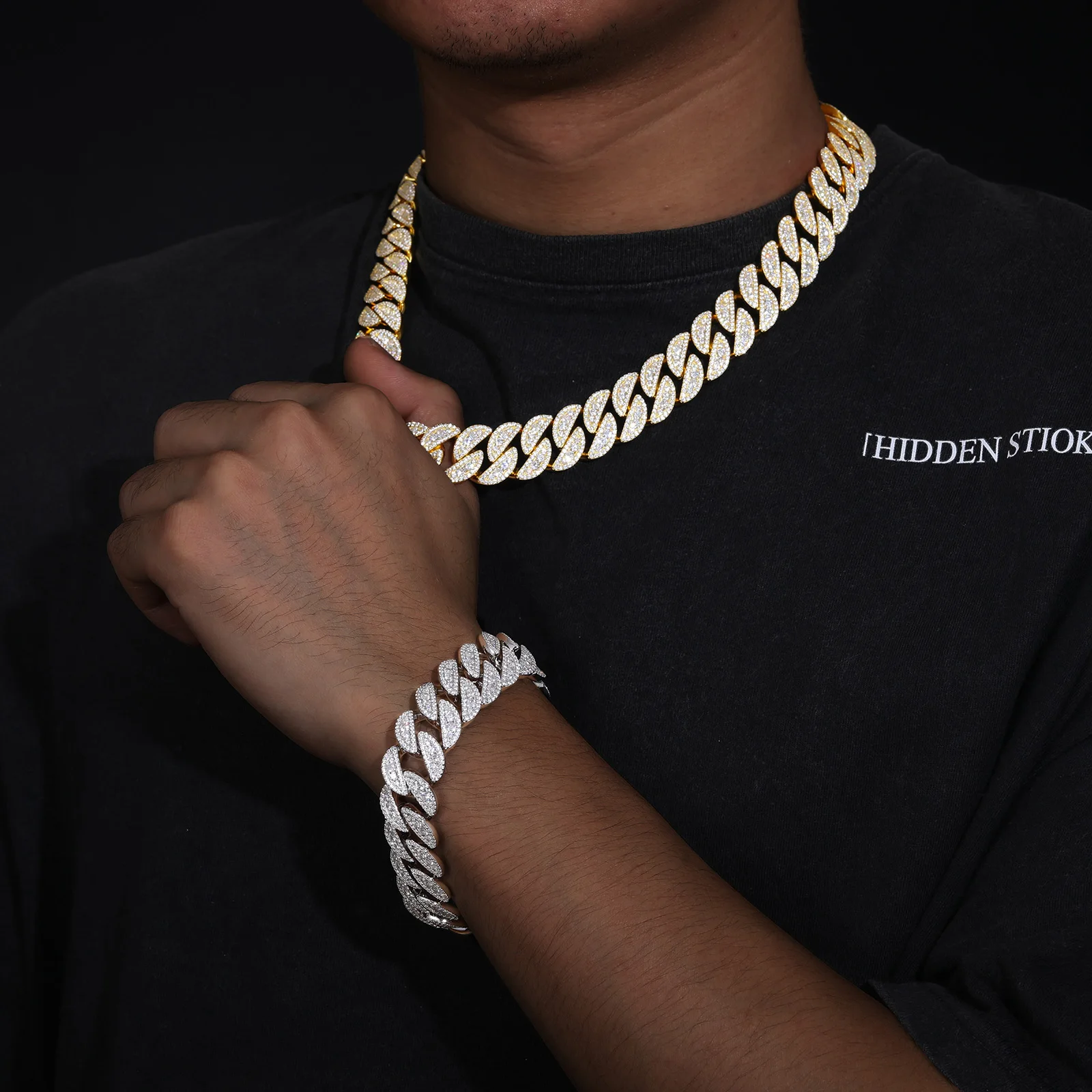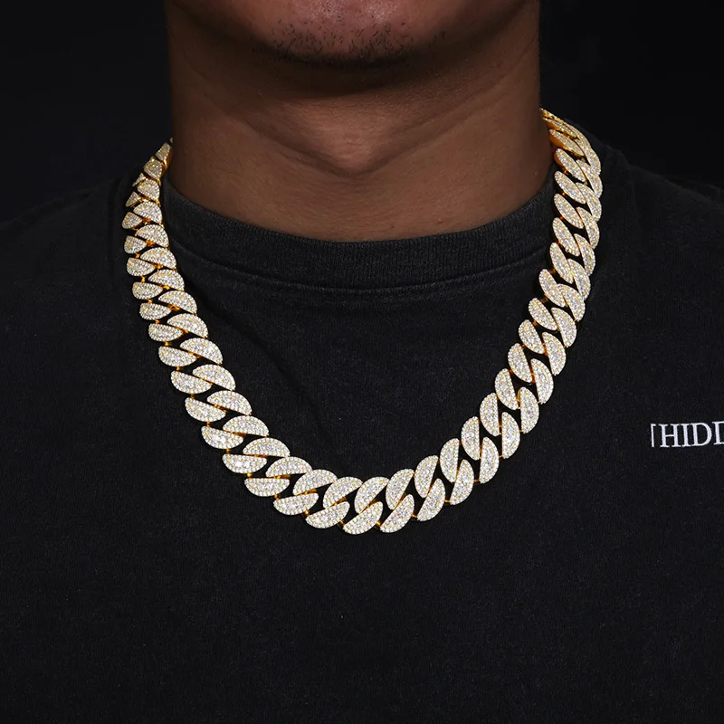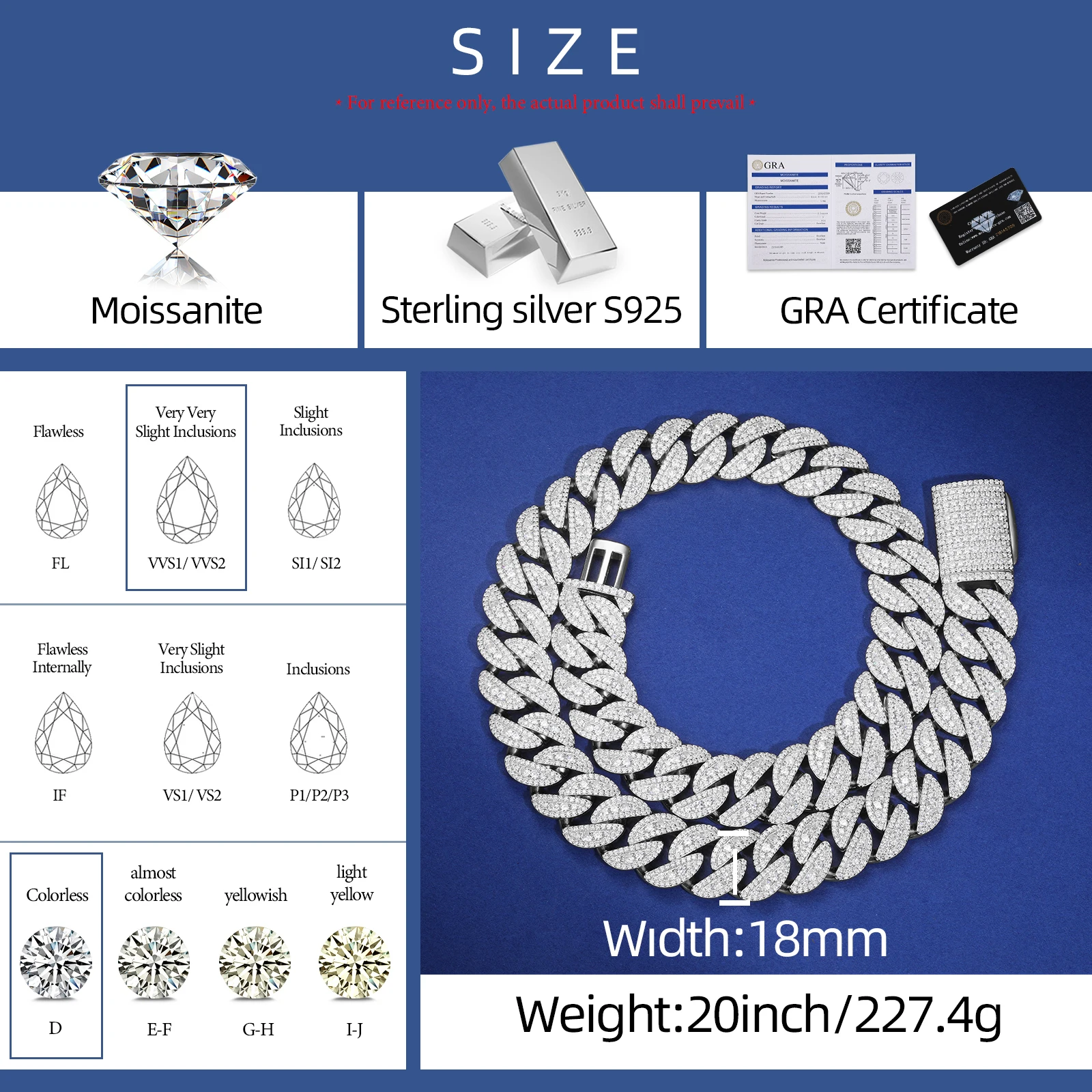 12mm-22mm Cuban Link Chain Hip Hop Men Necklace 925 Sterling Silver Iced Out Bling Cuban Chain For Men Punk Rapper Jewelry Gifts