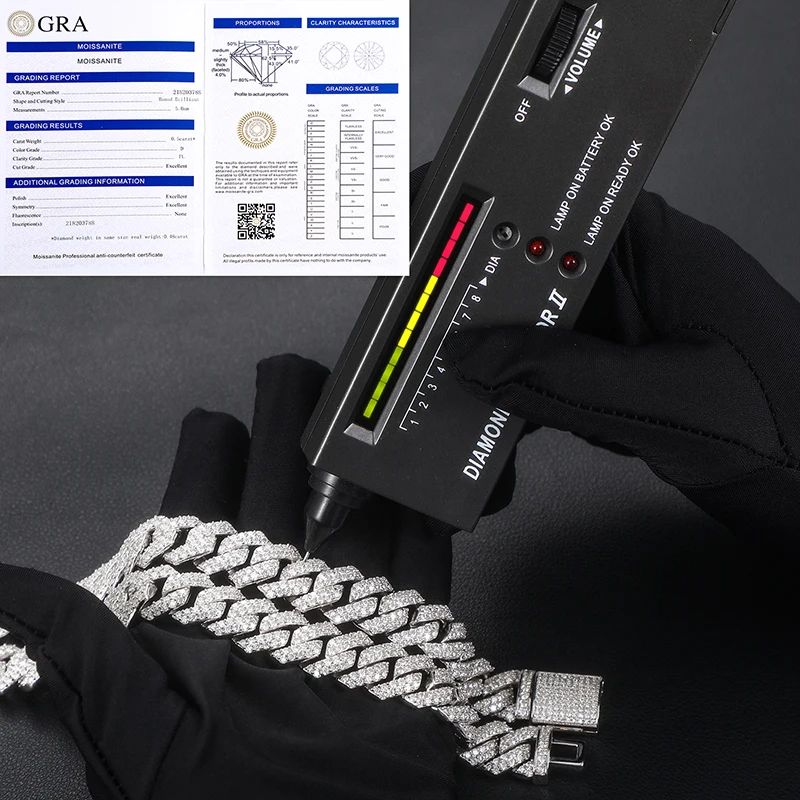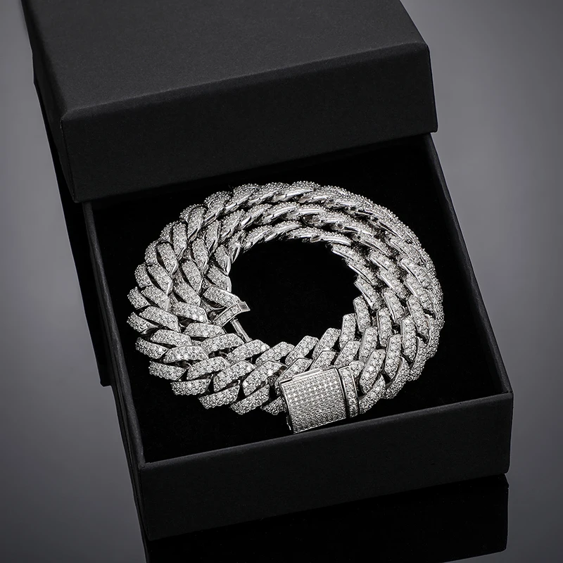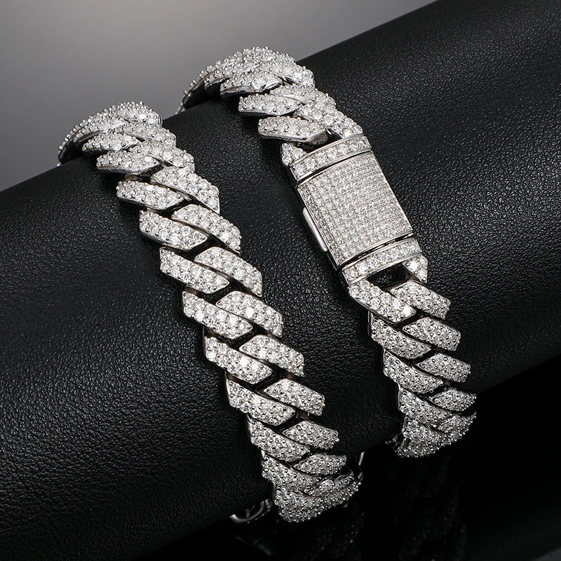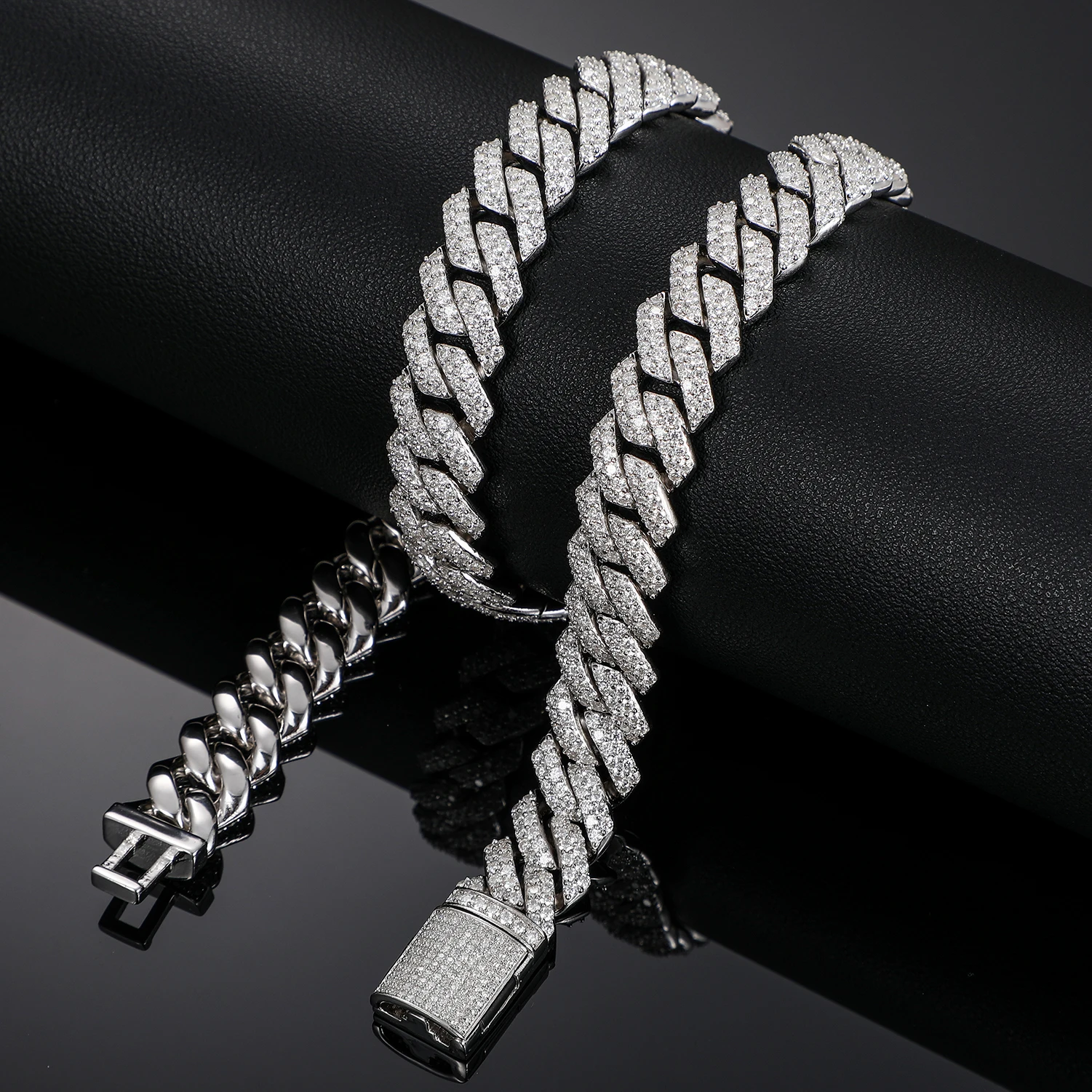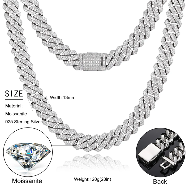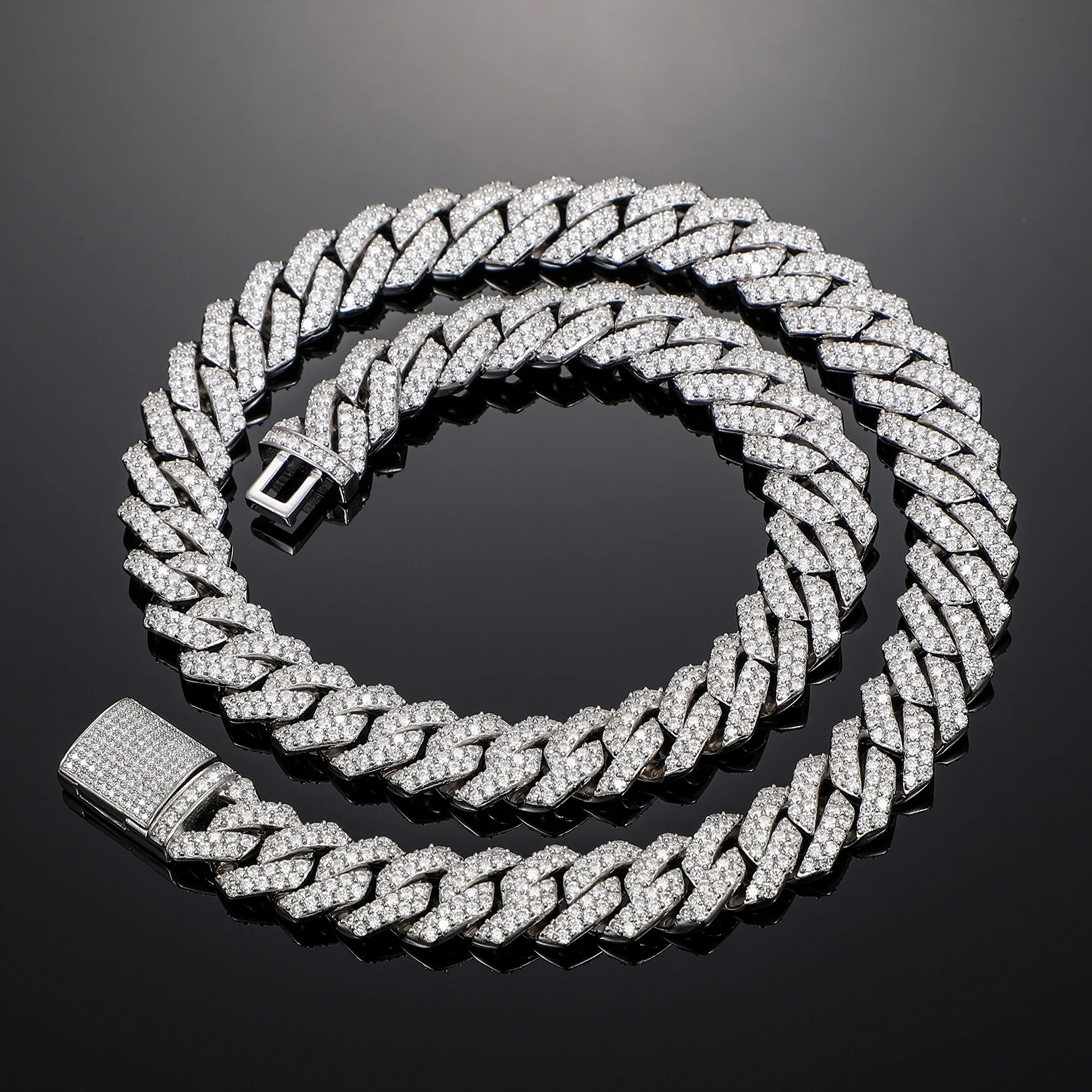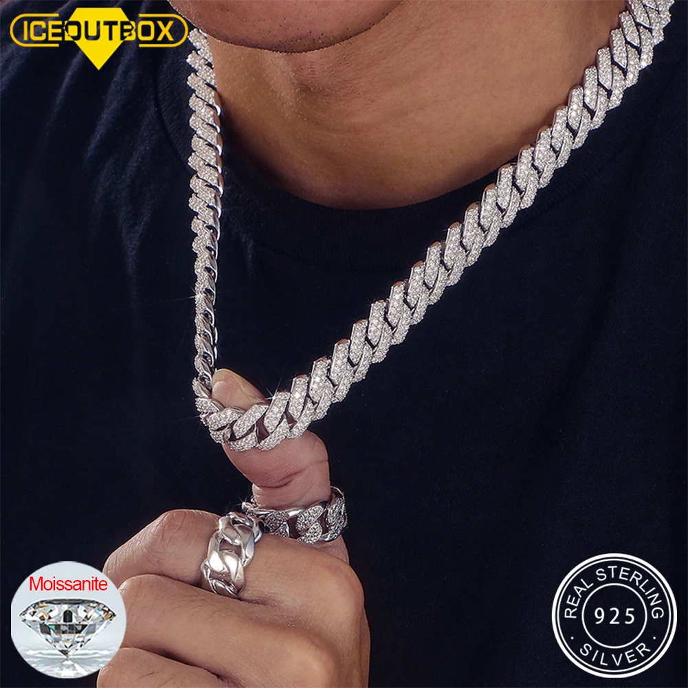 14mm S925 Sterling Silver VVS1 Moissanite Diamond Cuban Link Chain Necklace For Men Hip Hop Jewelry Miami Unisex Party Gift