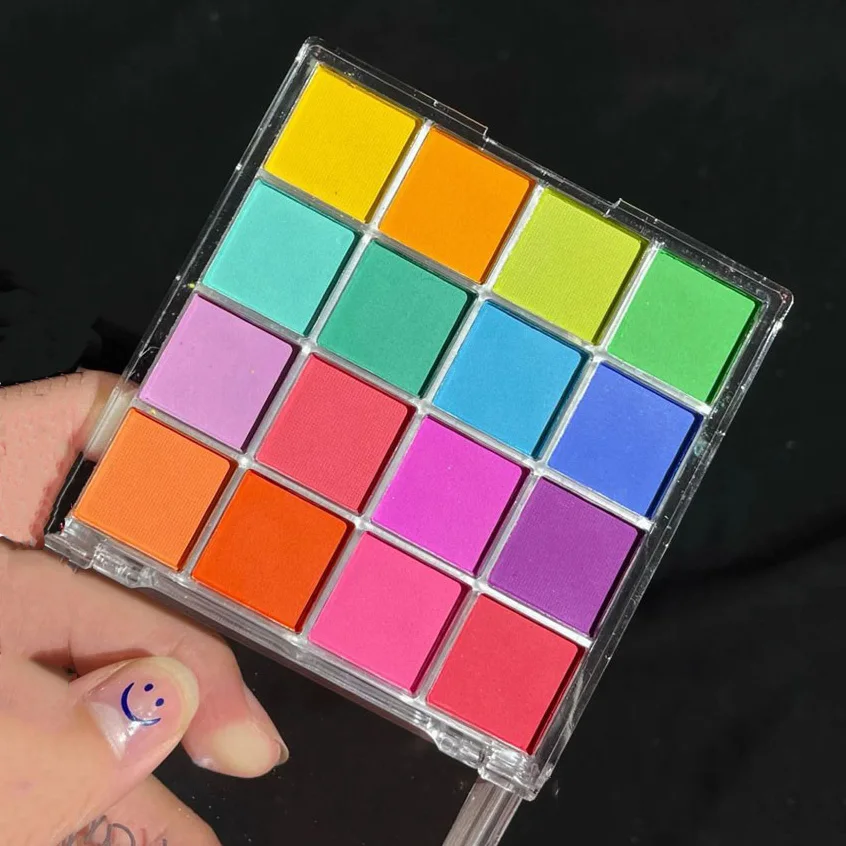 16-Grid 16 Color Solid Rubbing Powder Palette for Nail Art DIY Gradient Smudge Pat-pat Powder Nail Art Manicure Gradient Pigment