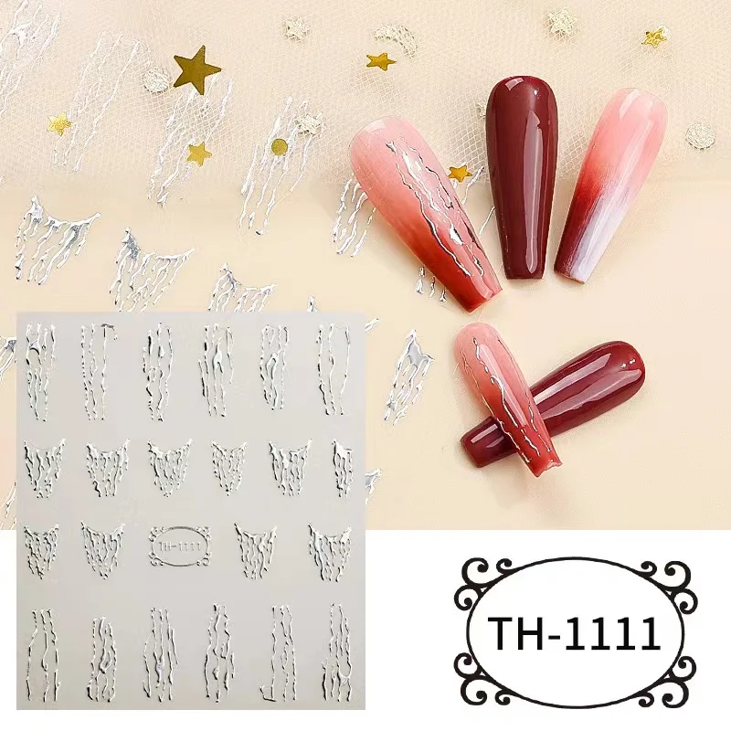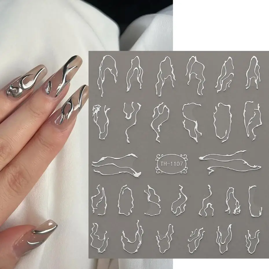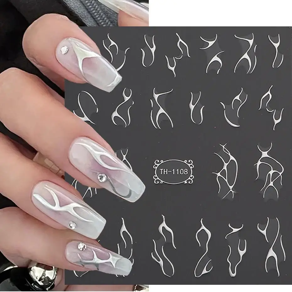 1PCS New Y2K Curve Line High Quality Nail Stickers Laser Butterfly Nail Supplies Four Seasons Flower Nail Decals For Manicure