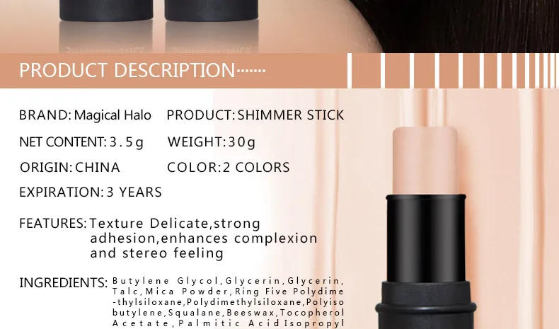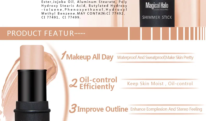 Smooth, Glitter, Soft, Brightening skin,Highlight contours, naturally no traces, correct skin tone, three-dimensional facial features,Water-proof and long-lasting,Easy to blend,Multi-dimensional look