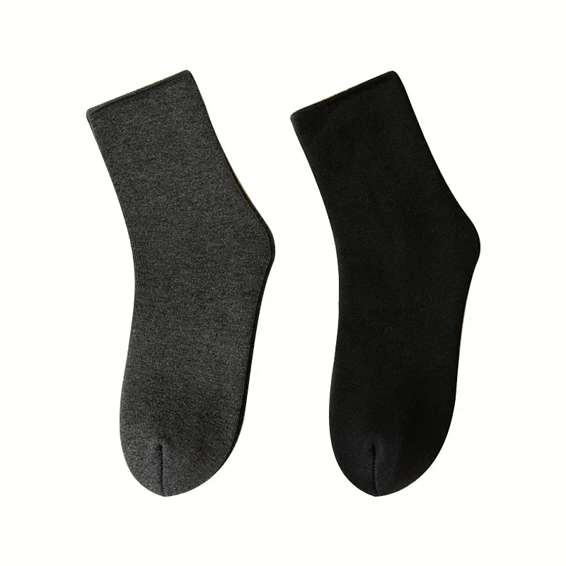 2 Pairs Men Winter Socks Warm Thicken Thermal Snow Boots Solid Color Floor Socks Soft Outdoor Anti-Cold Cashmere Socks