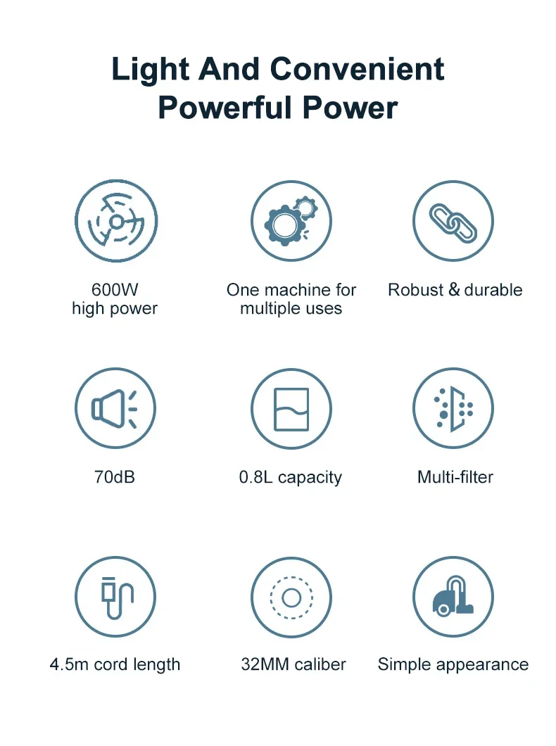 3. High vacuum suction. 600W high-power, 16000pa suction, brush motor, easy to meet the needs of large units.