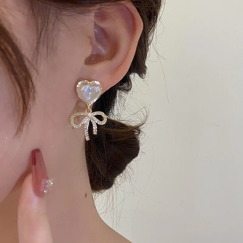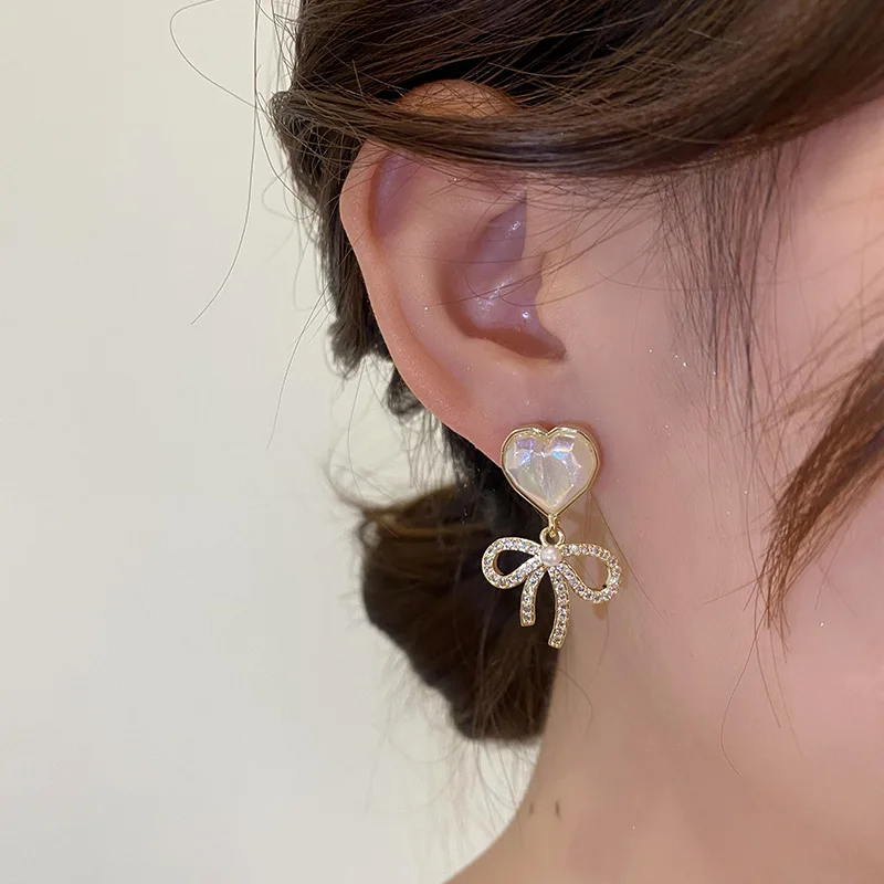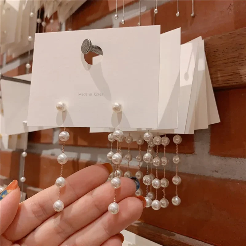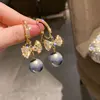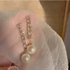 2022 New Trend Simulation Pearl Long Earrings Women’s Flower Rhinestone Wedding Pendant Earrings Fashion Korean Jewelry Earrings