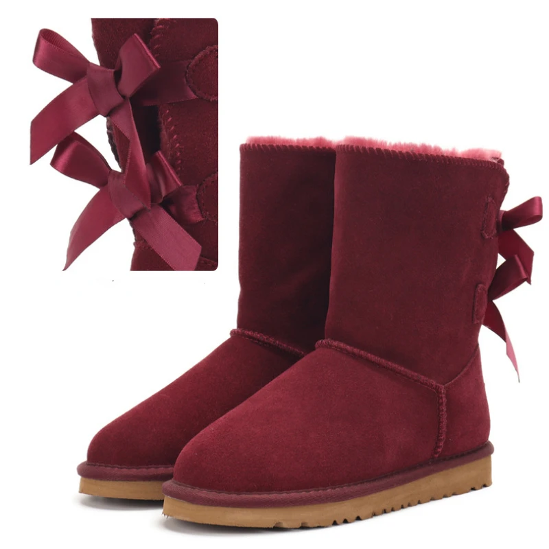 2023 Black Mid-barrel Snow Boots two Bow-tie Women’s Boots Thick Warm Winter Boots Large Size 34-45 Women’s Cotton Shoes