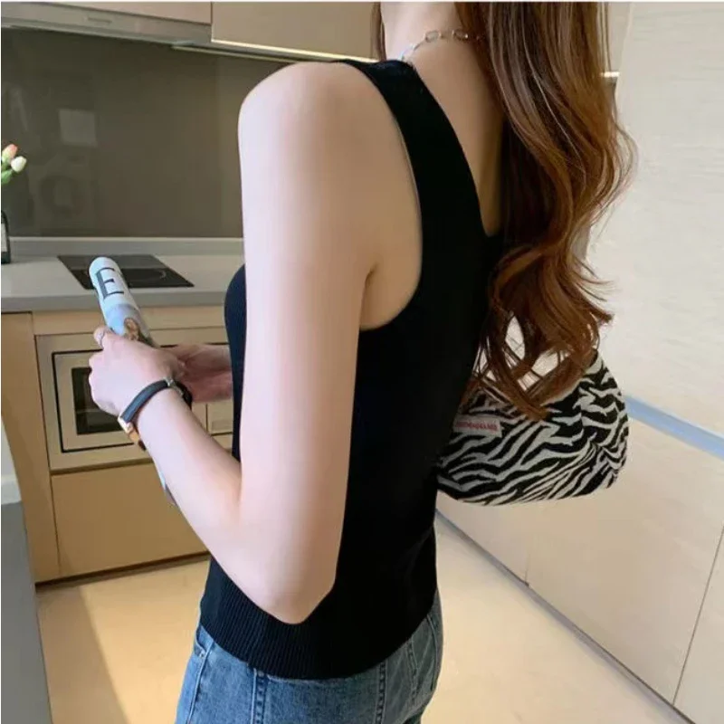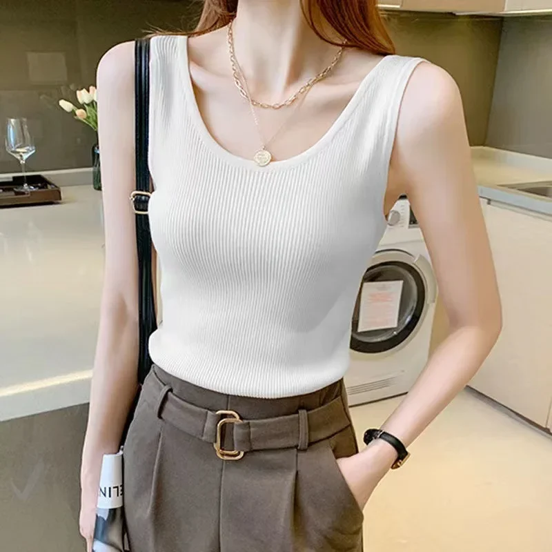 2023 Summer Knit Vest Top Sexy Suspender Thread Waistcoat Women Camisole T-shirt Solid Slim Thin Inner Bottom Coat Tank Top 5XL