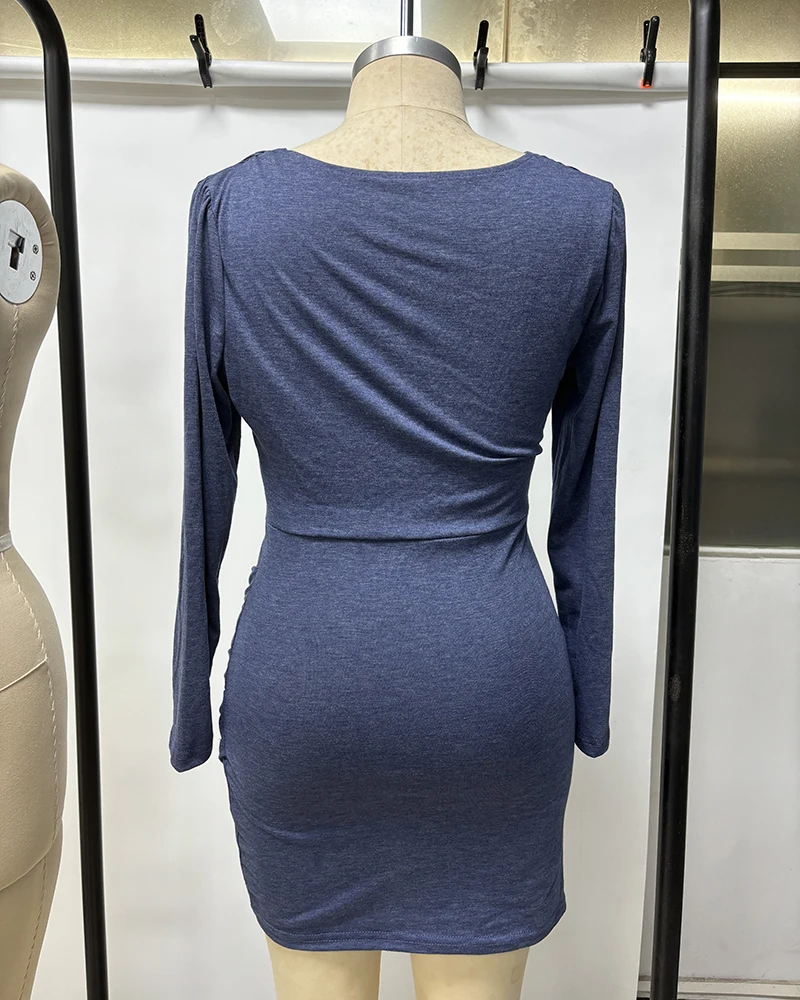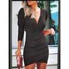 2024 burst waist show thin solid color v-neck long sleeve tight skirt folk wind nightclub dress woman