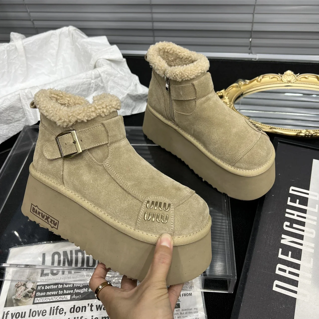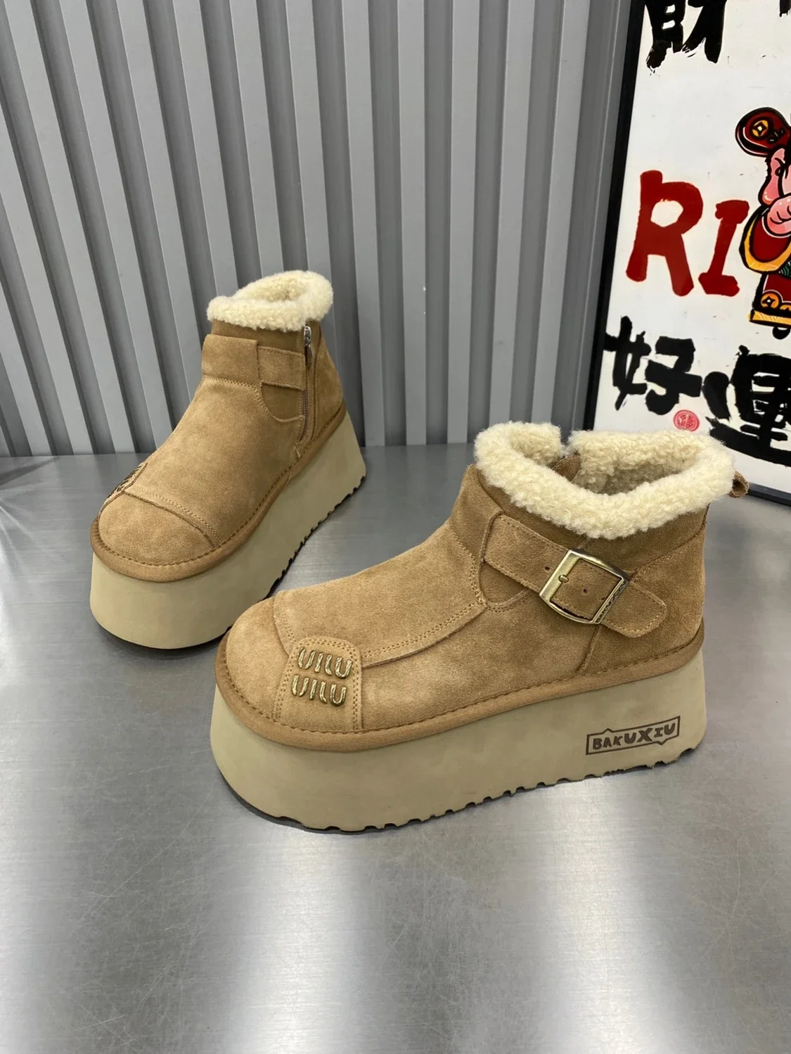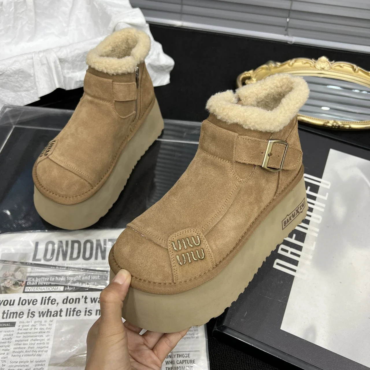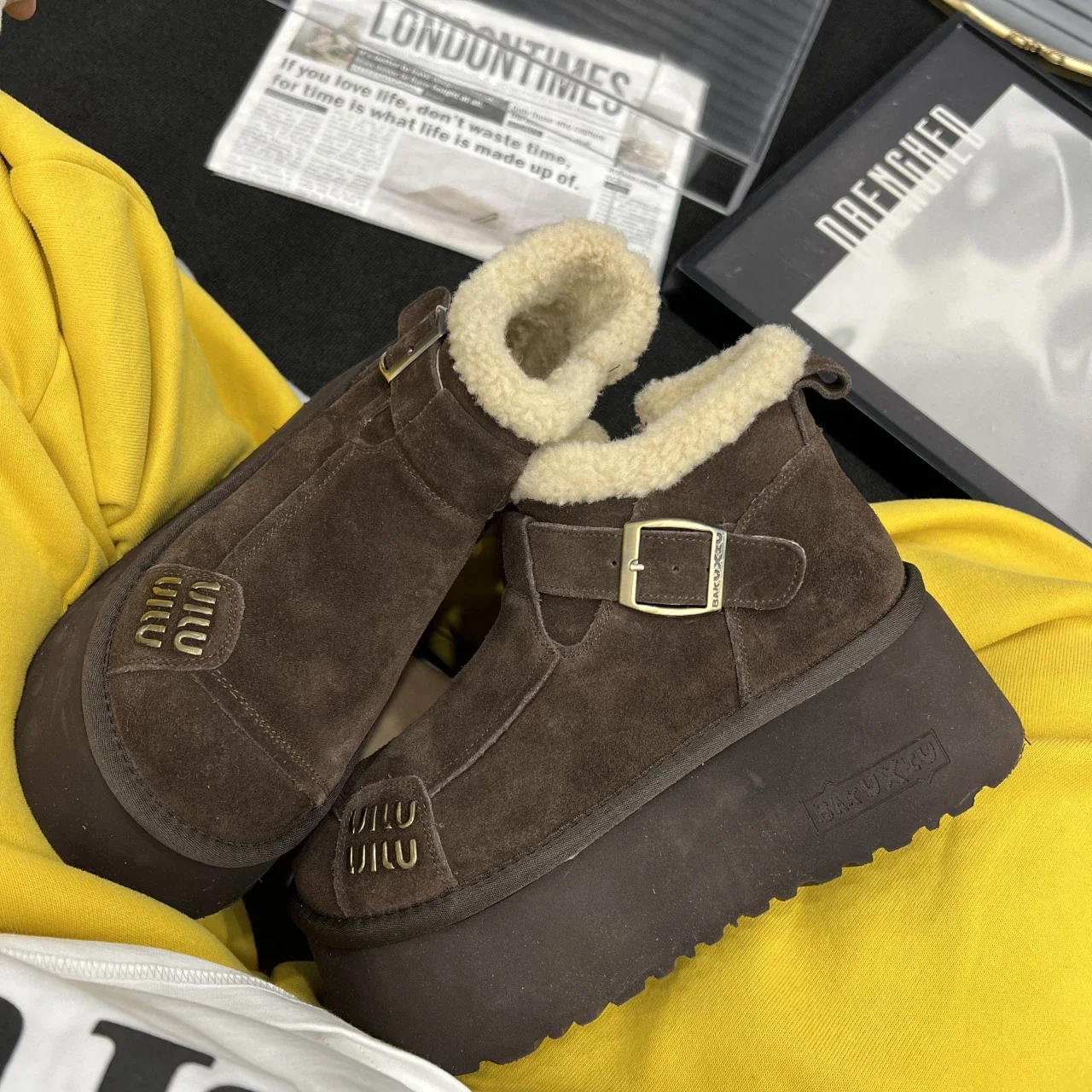 2024 New Fur Platform Women Ankle Boots Flats Suede Warm Shoes Woman Trend Designer Brand Short Plush Cozy Femme Snow Botas