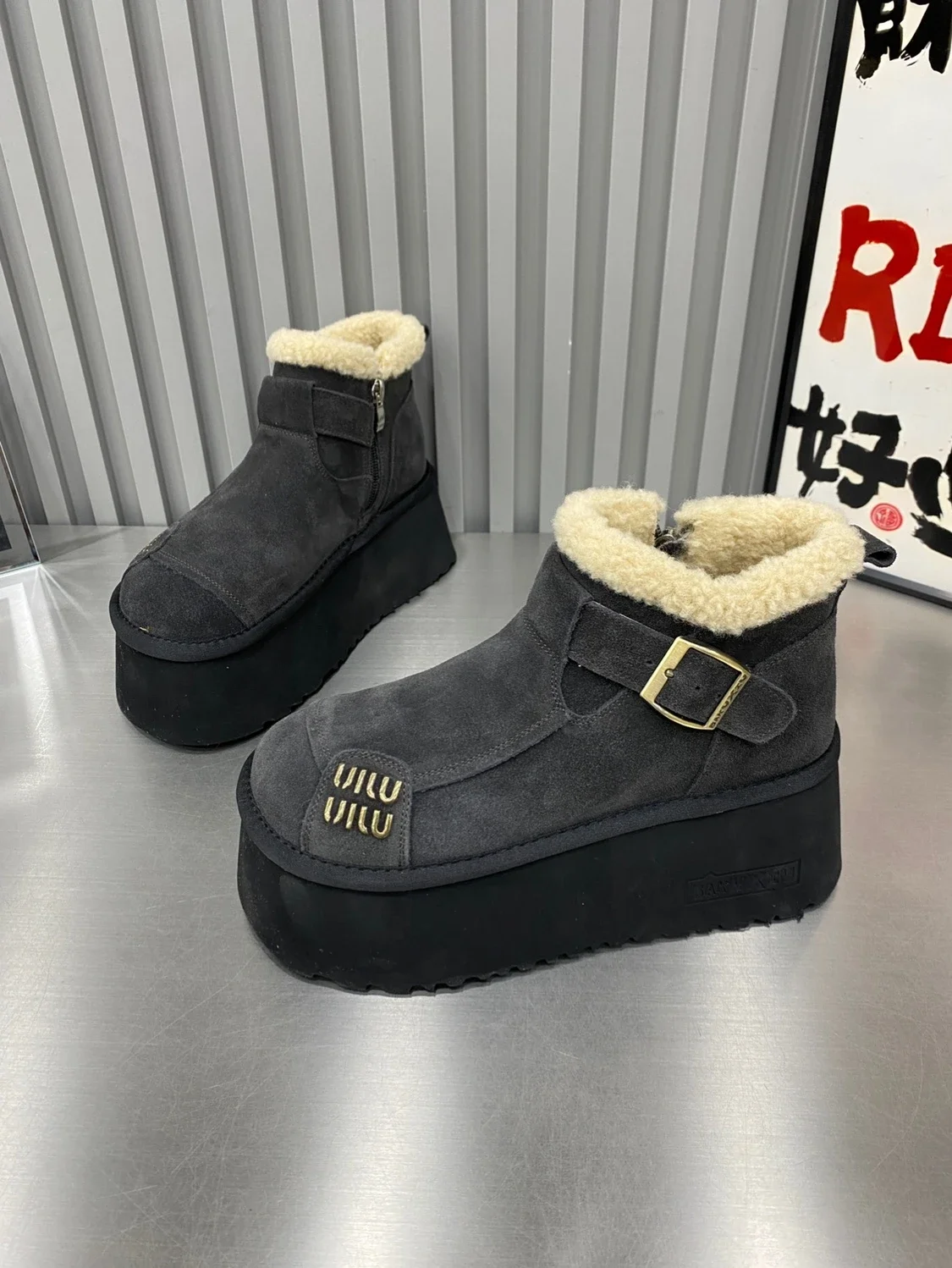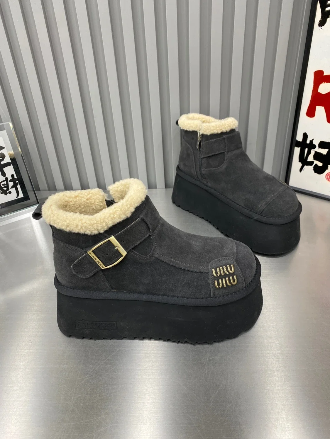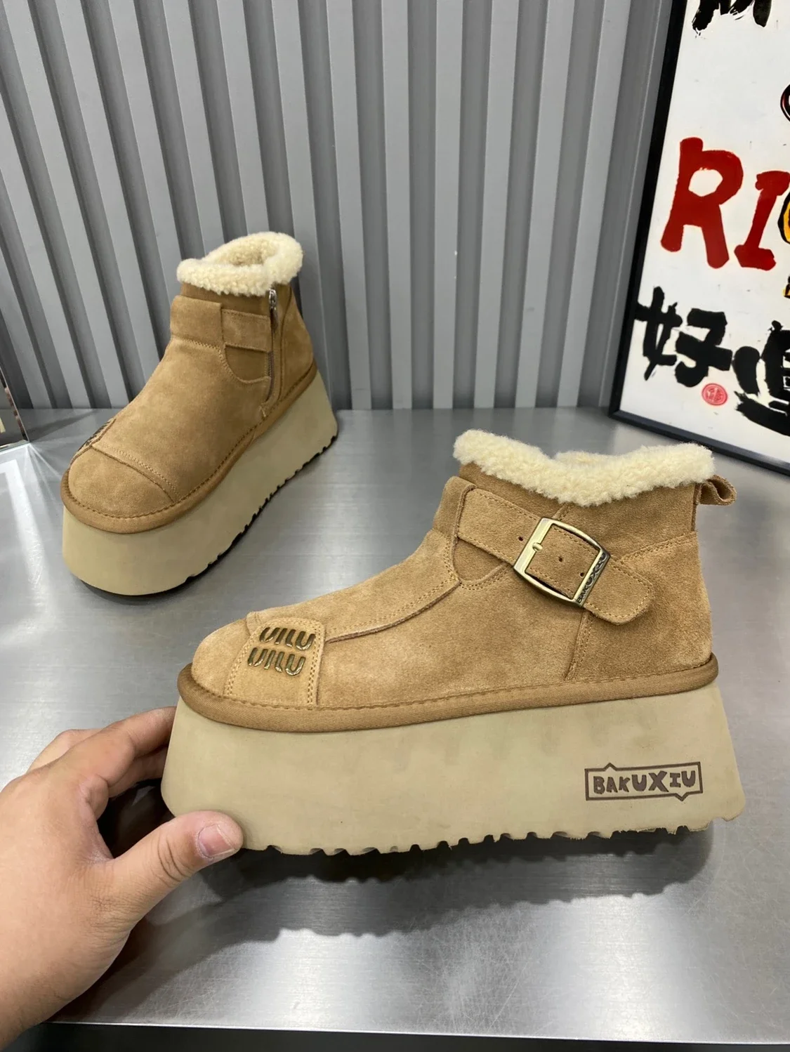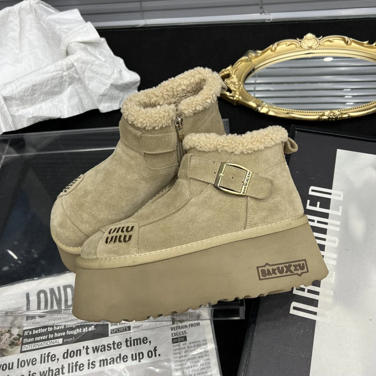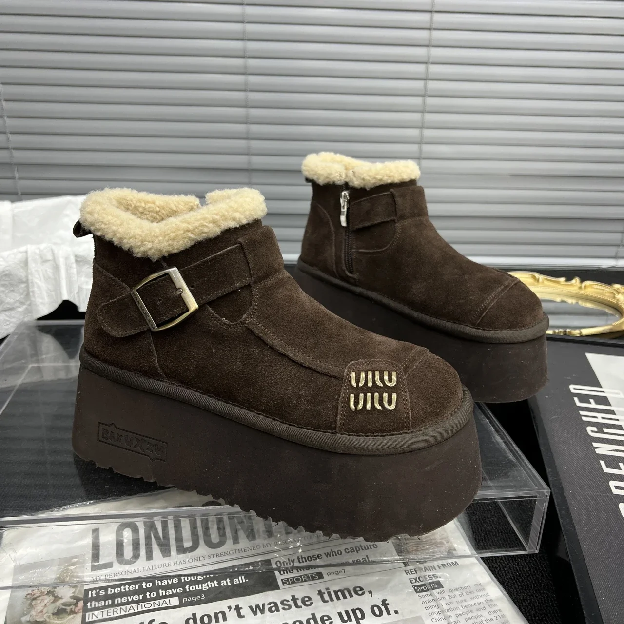 2024 New Fur Platform Women Ankle Boots Flats Suede Warm Shoes Woman Trend Designer Brand Short Plush Cozy Femme Snow Botas
