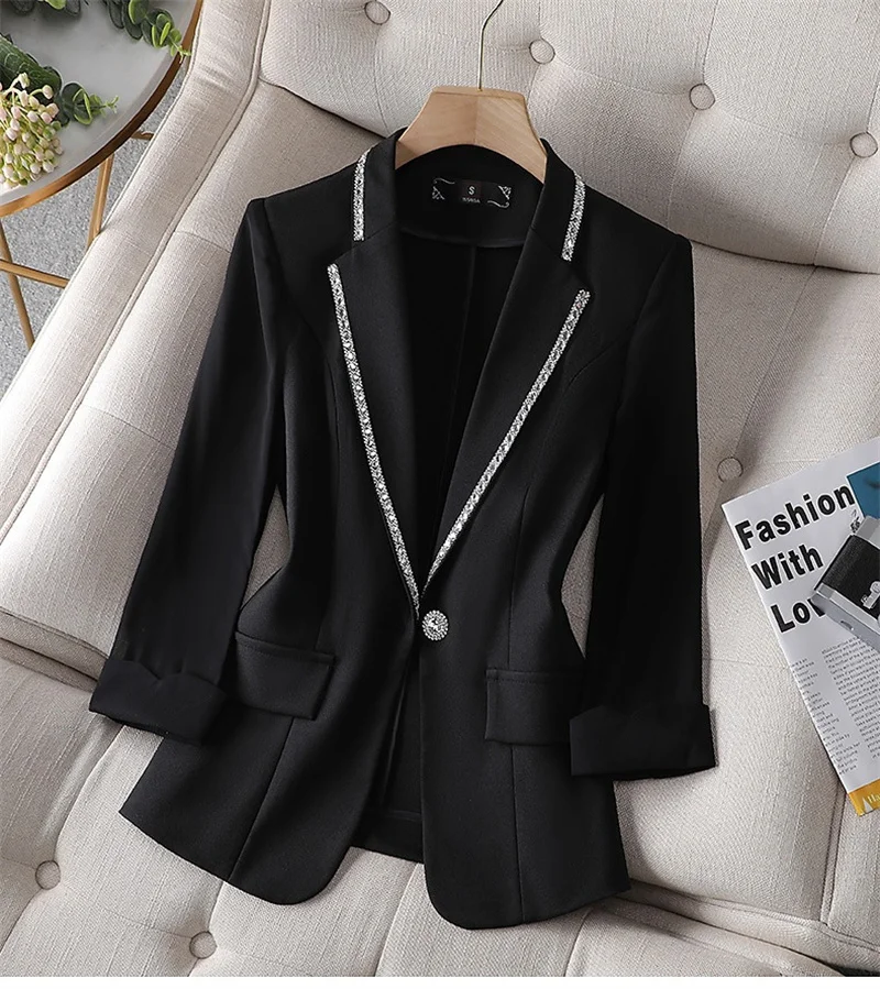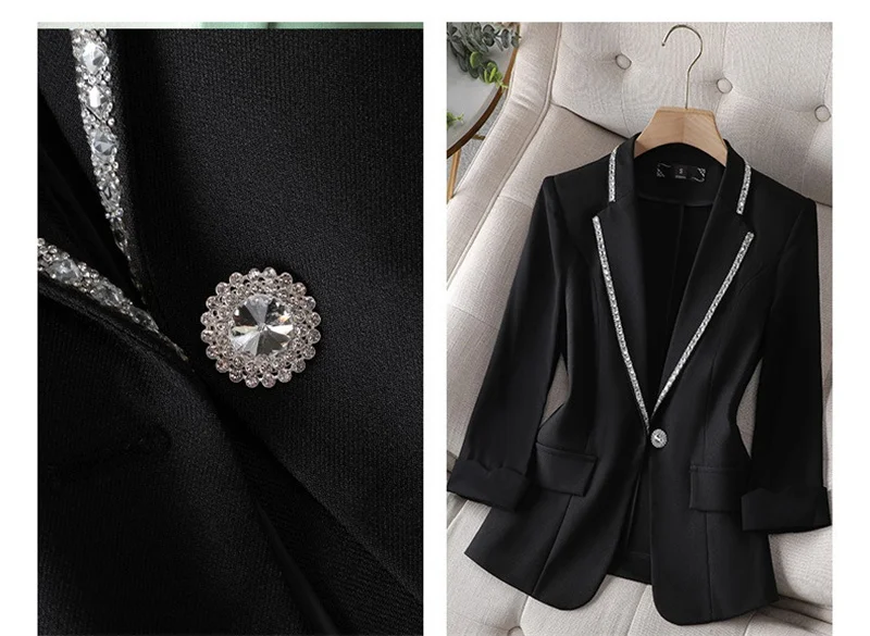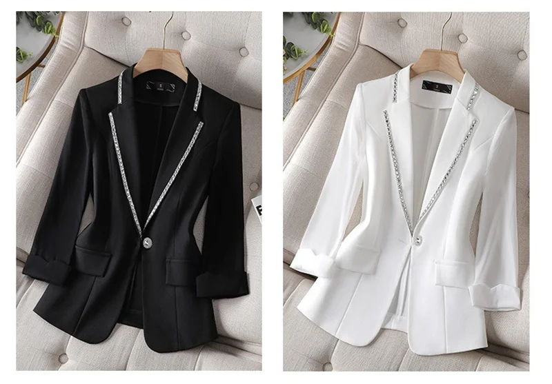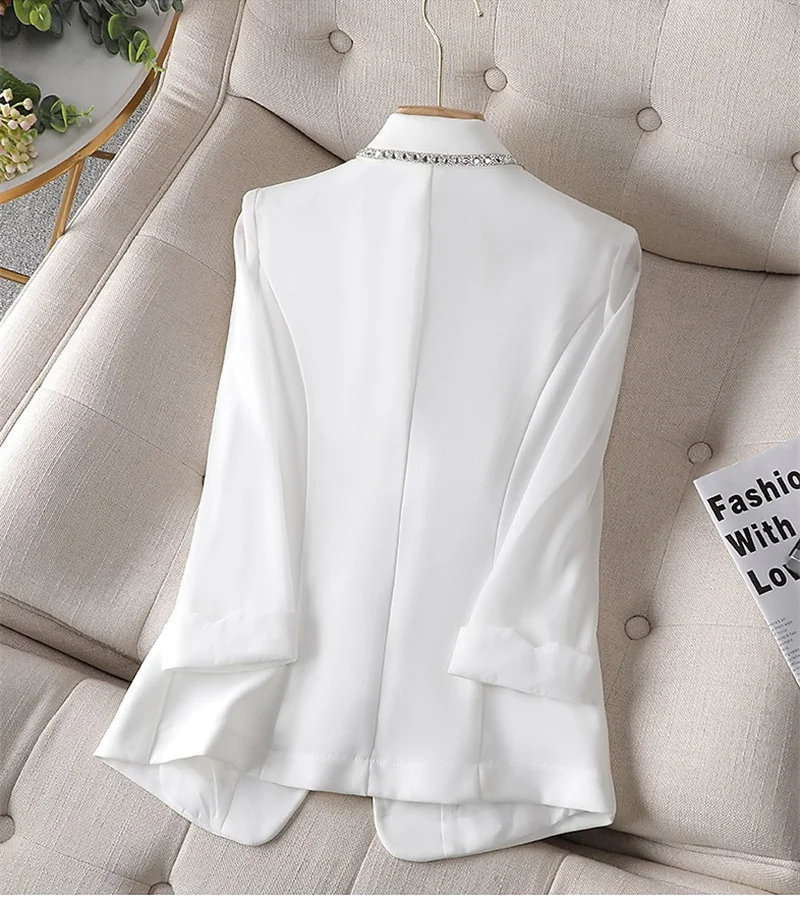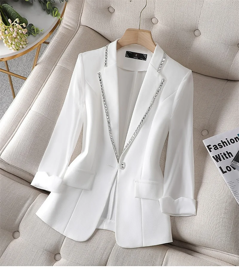 2024 New Summer Women’s Blazer Diamond-Encrusted Sunscreen Jacket White Suit Jacket Women Fashion Thin Blazer Ladies Tops5XL