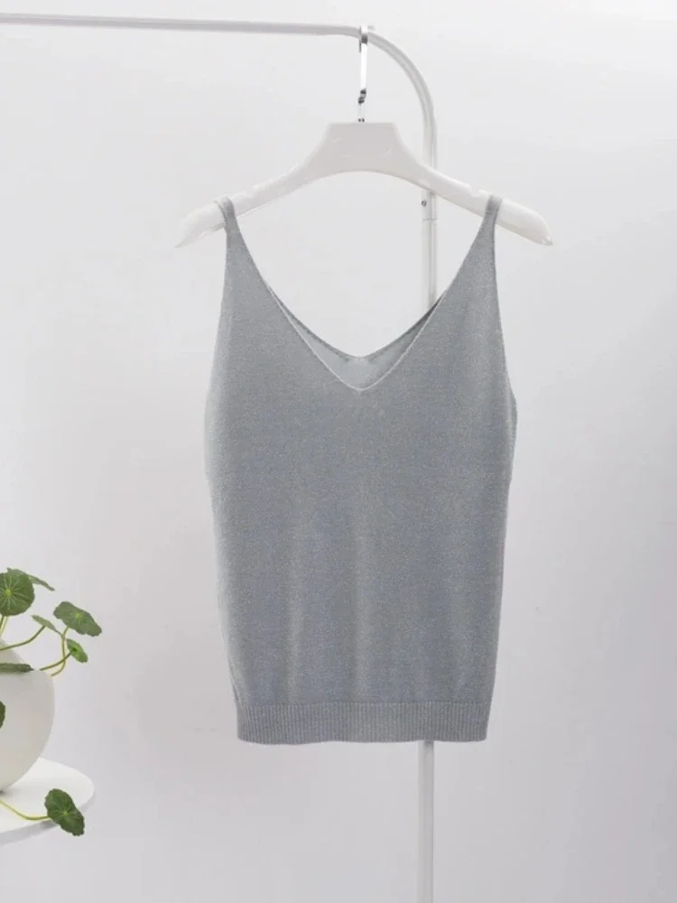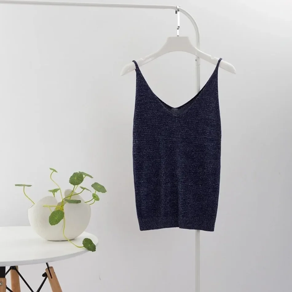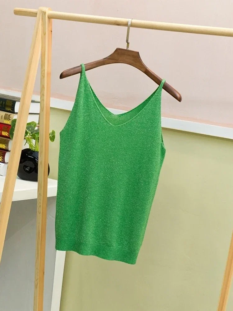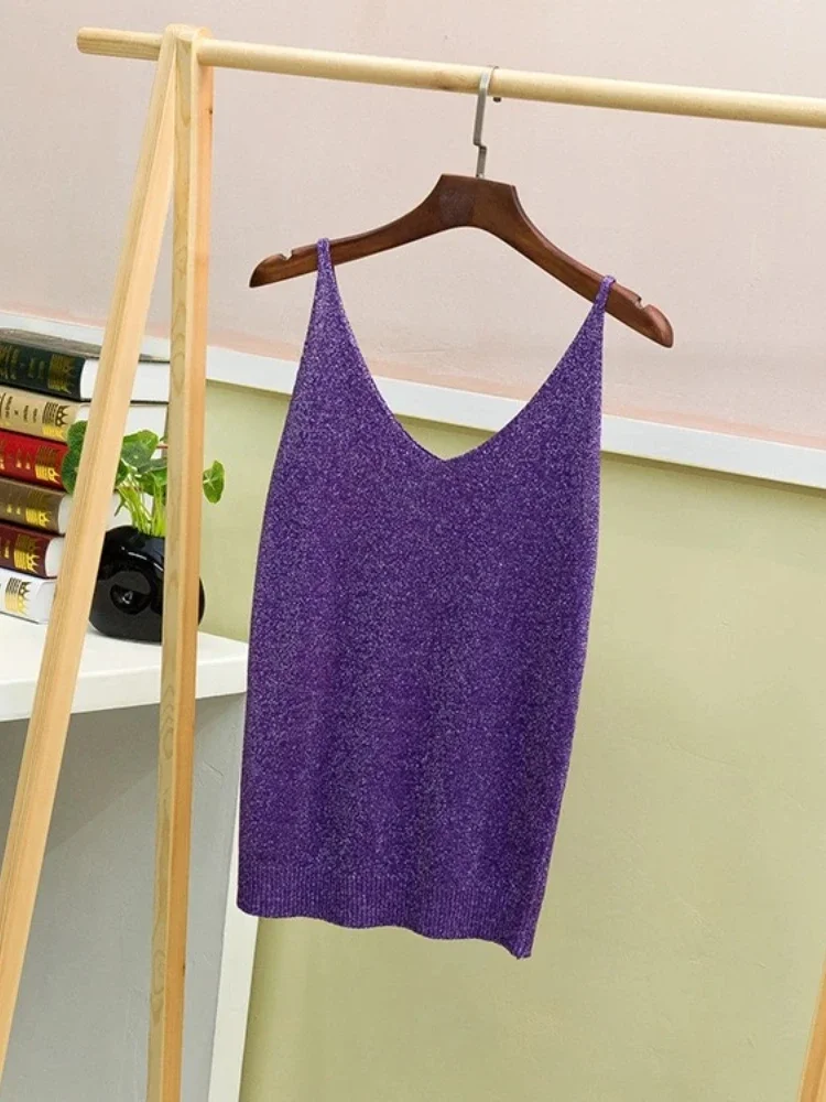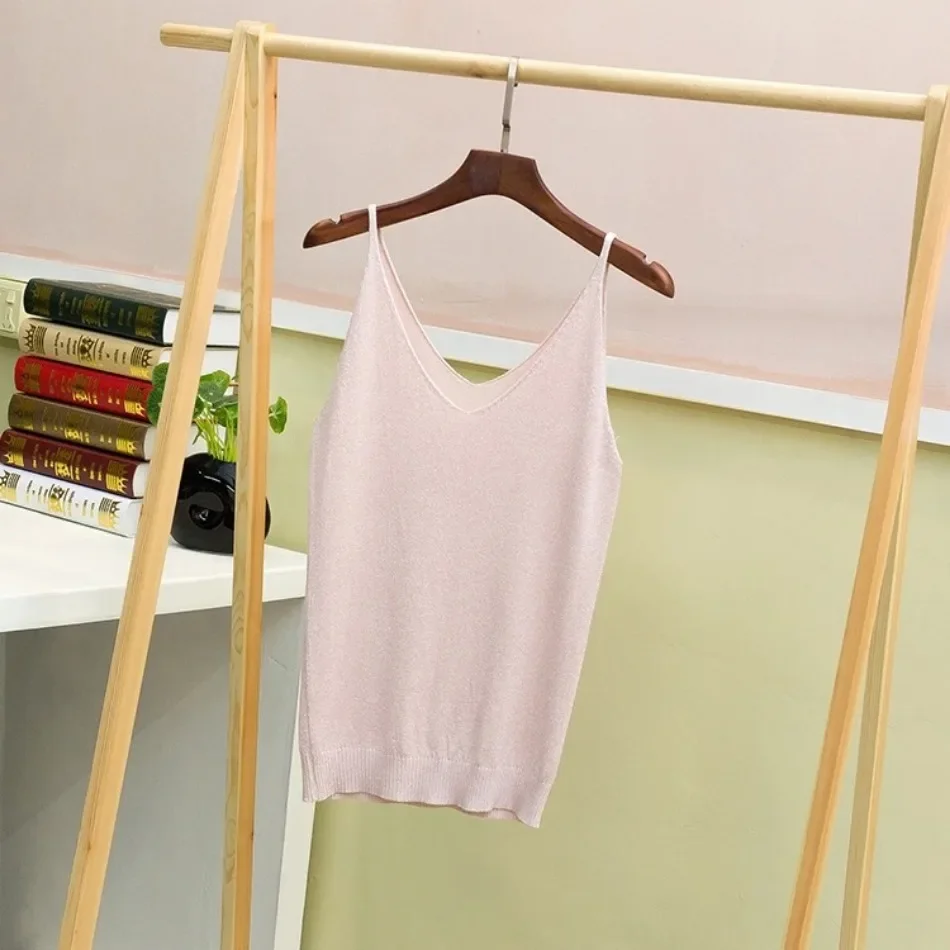 2025 New Bright Silk Knitted Sling Vest Women Clothing Summer Solid Thin Short Slim-fitting Sexy Bottoming Shirt Tank Top Women