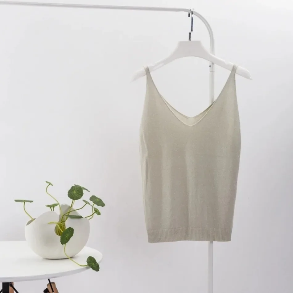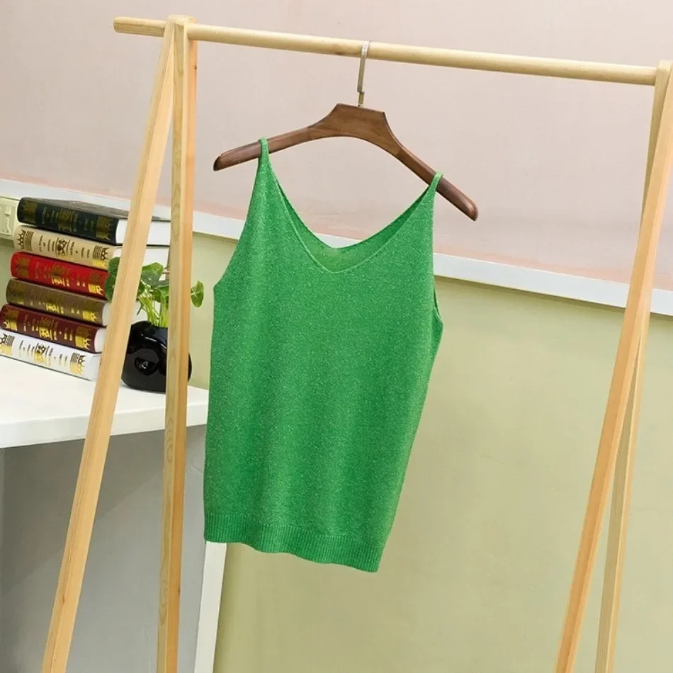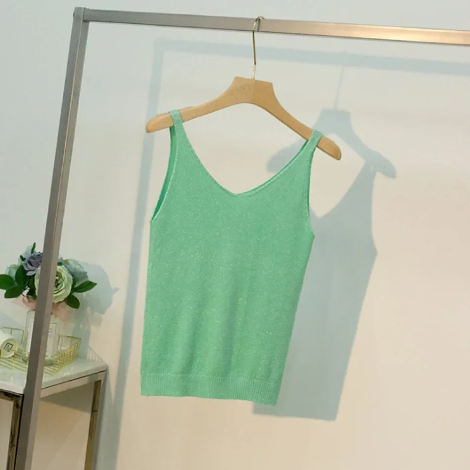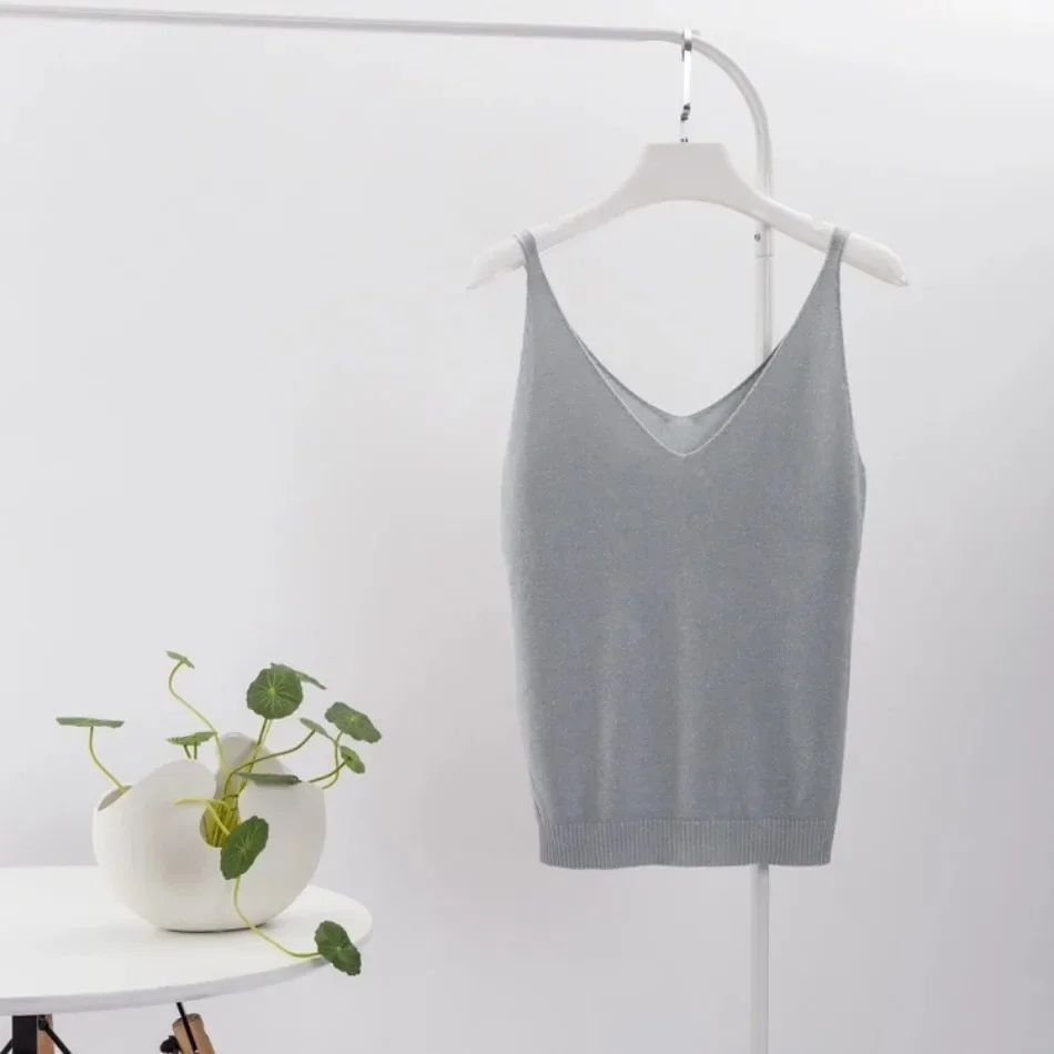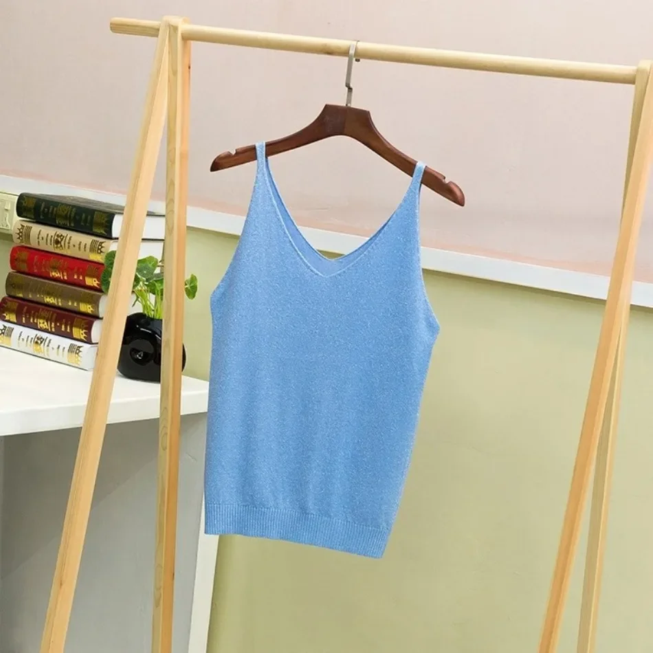 2025 New Bright Silk Knitted Sling Vest Women Clothing Summer Solid Thin Short Slim-fitting Sexy Bottoming Shirt Tank Top Women