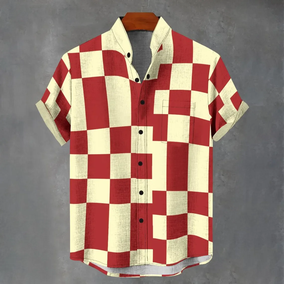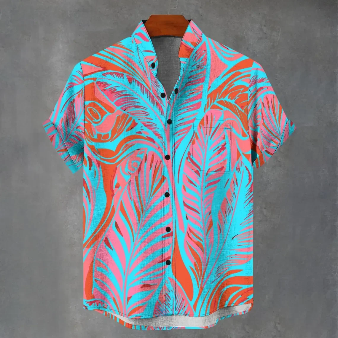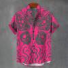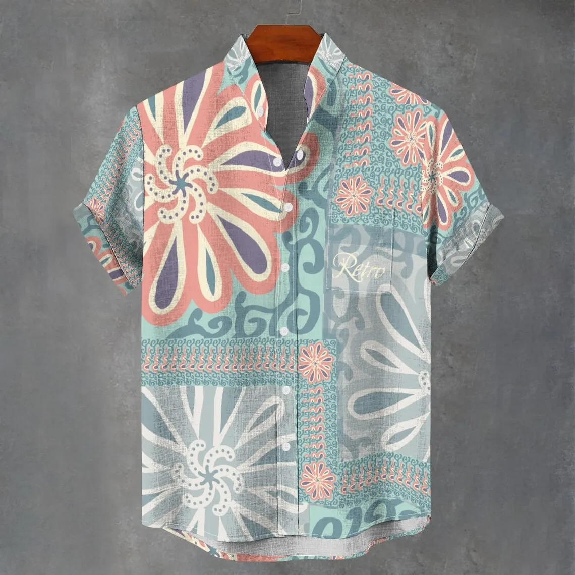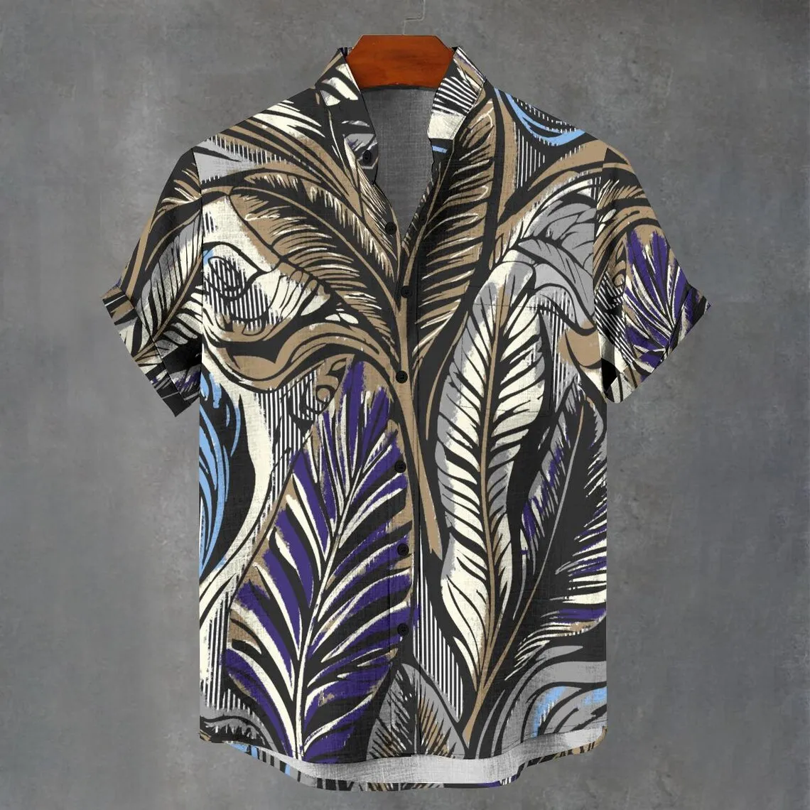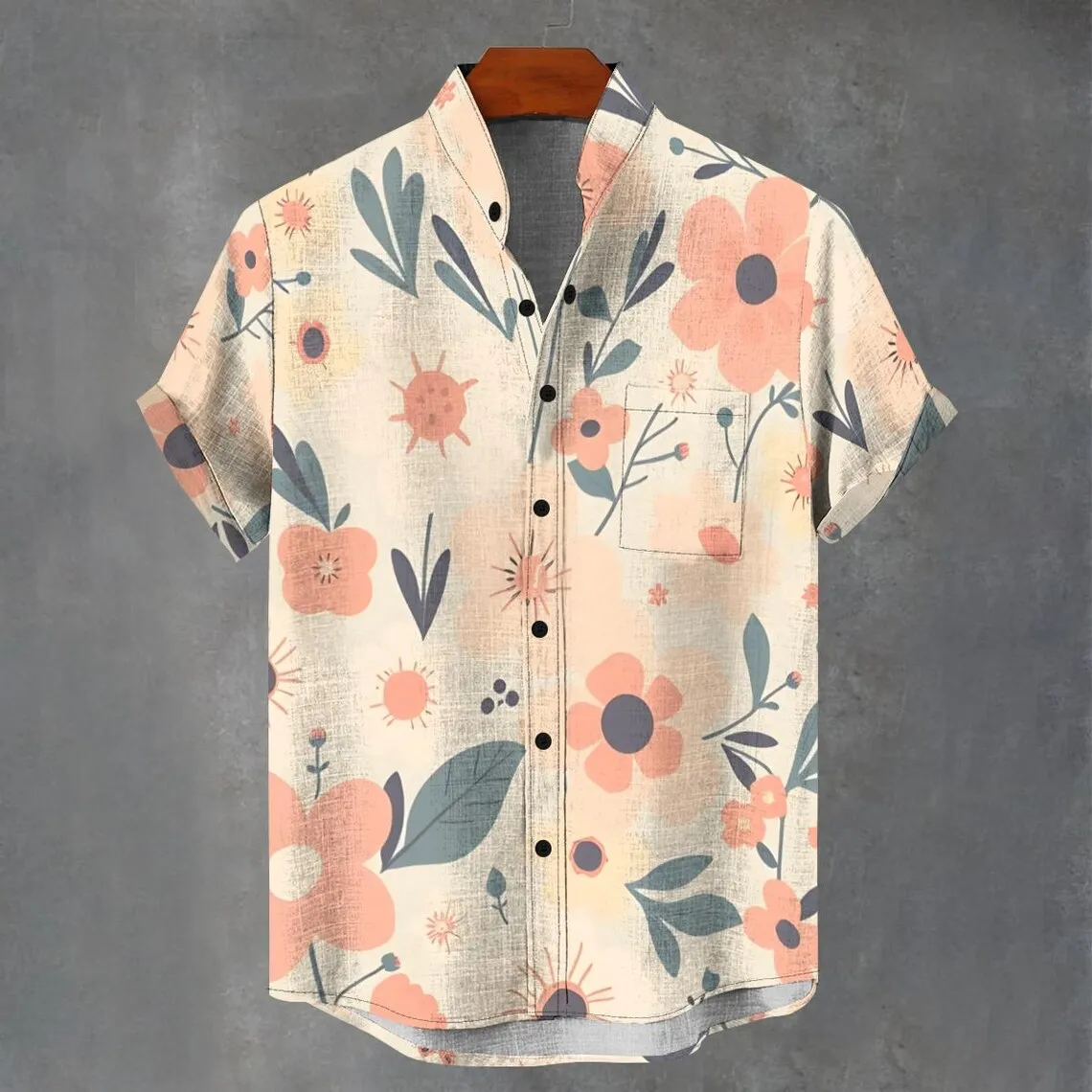 2025 new European and American 3D butterfly print loose trendy short sleeved stand up collar linen short sleeved shirt