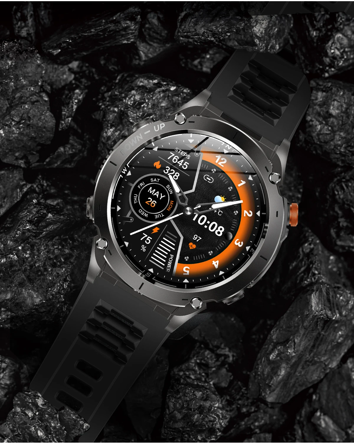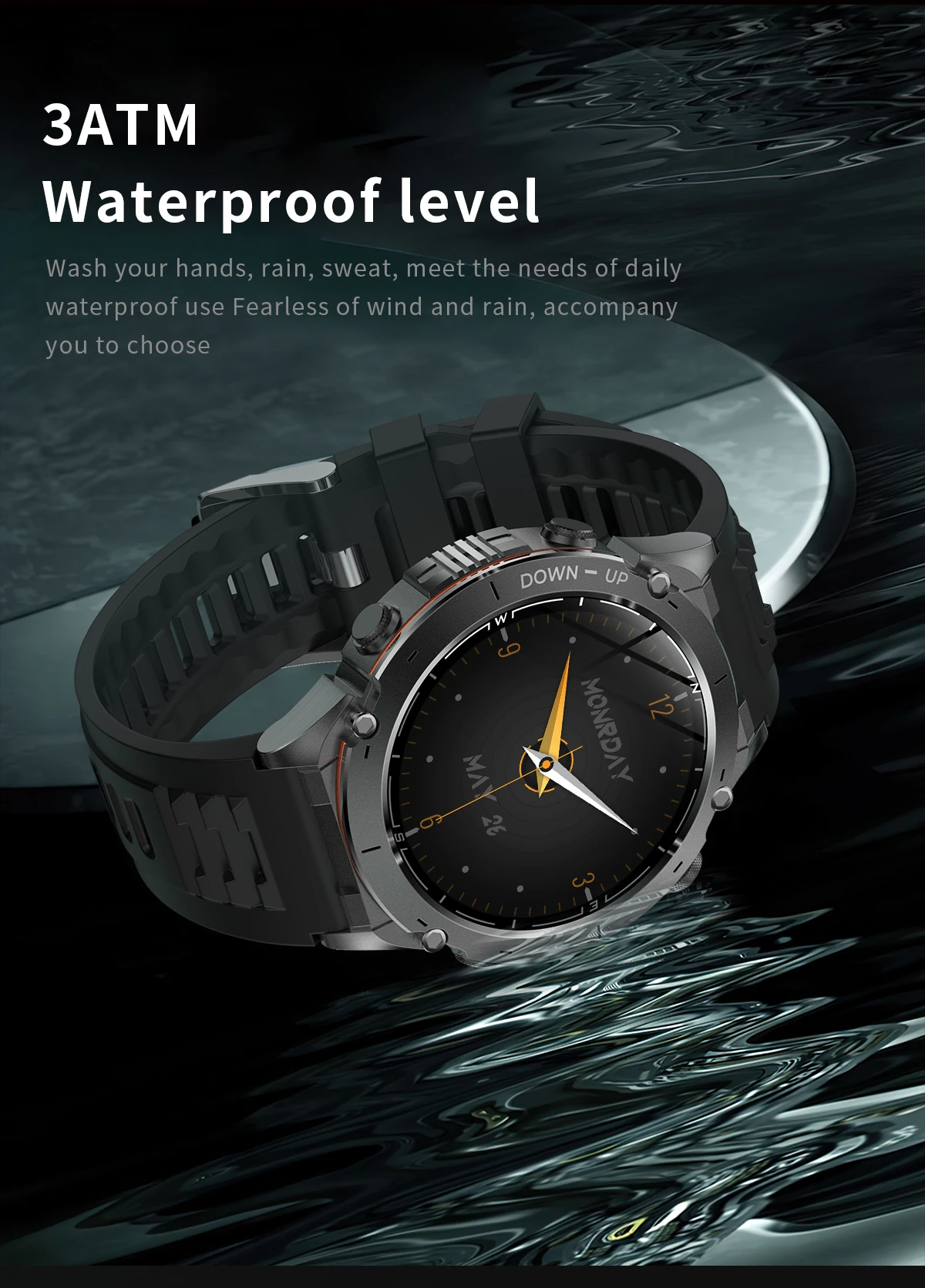 Metal body, dustproof, fall-resistant, replaceable watch strap, 30-meter depth waterproof, AMOLED full-touch high-definition display, large-capacity high-voltage pure cobalt battery, L1 high-precision positioning GPS, multi-sensor, 170+ sports modes, support heart rate, blood oxygen, air pressure, altitude, compass, flashlight