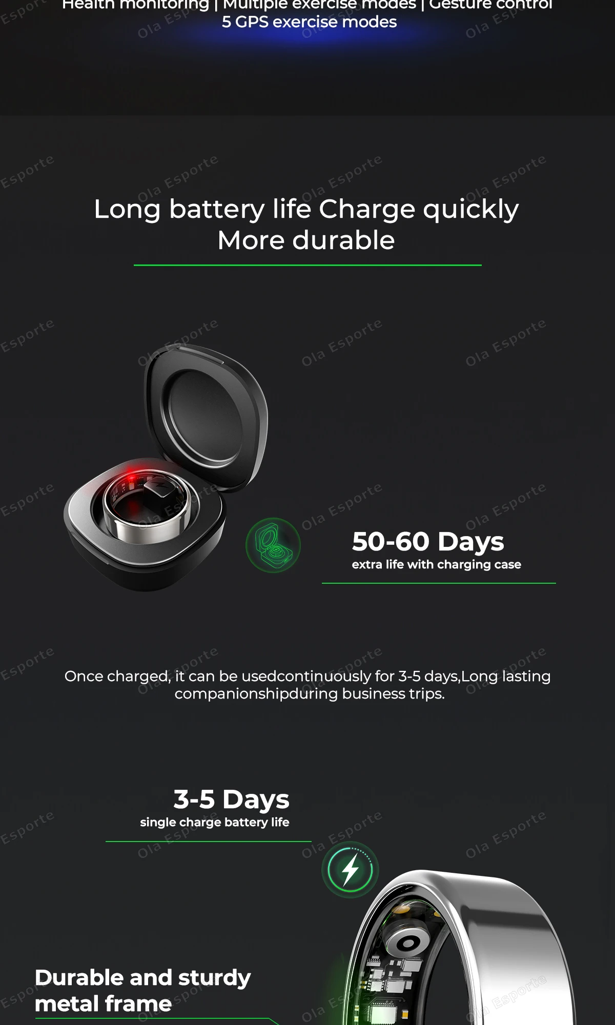 Operation:The ring has no touch and no buttons; App initiates movement and function tests