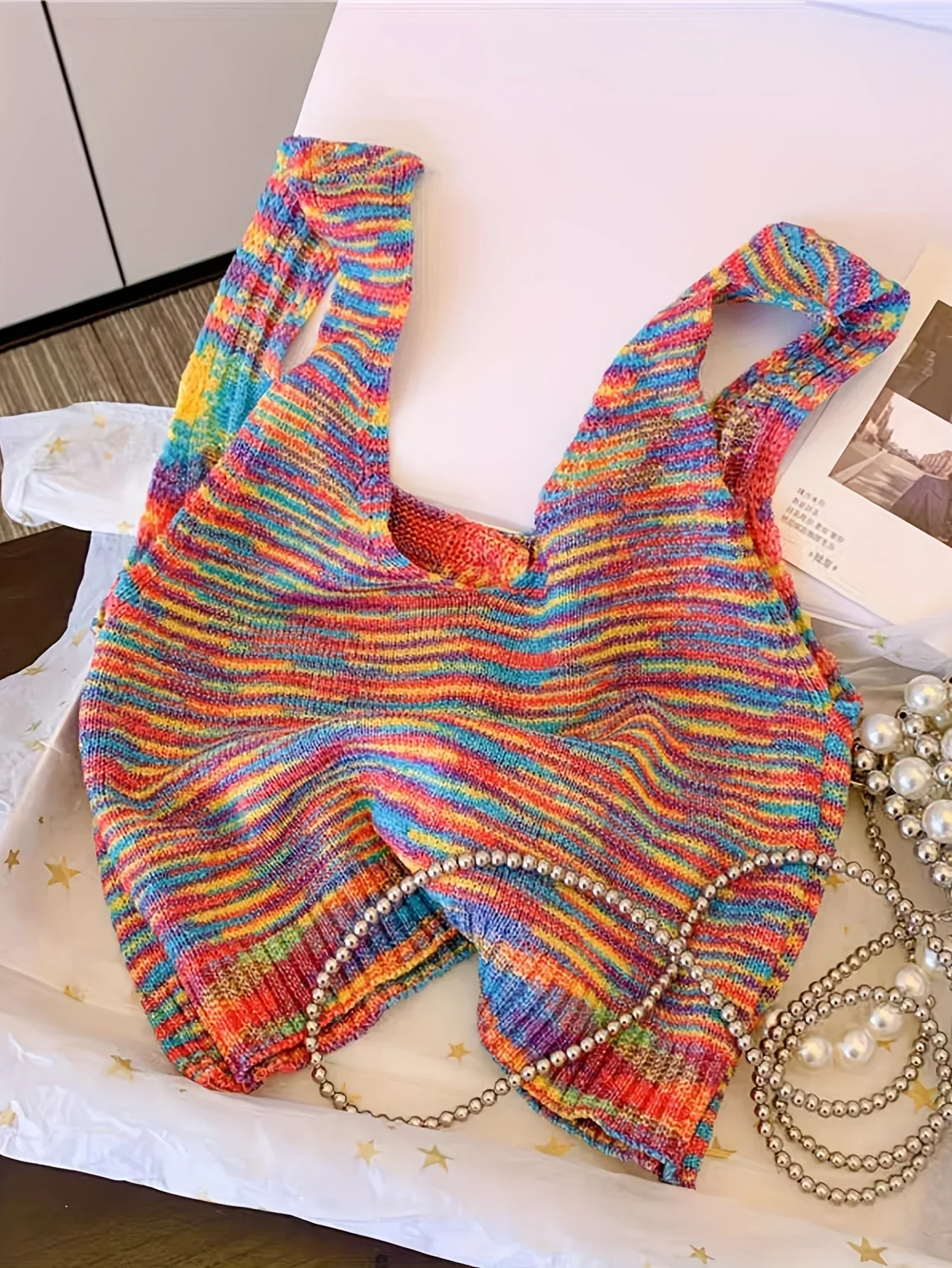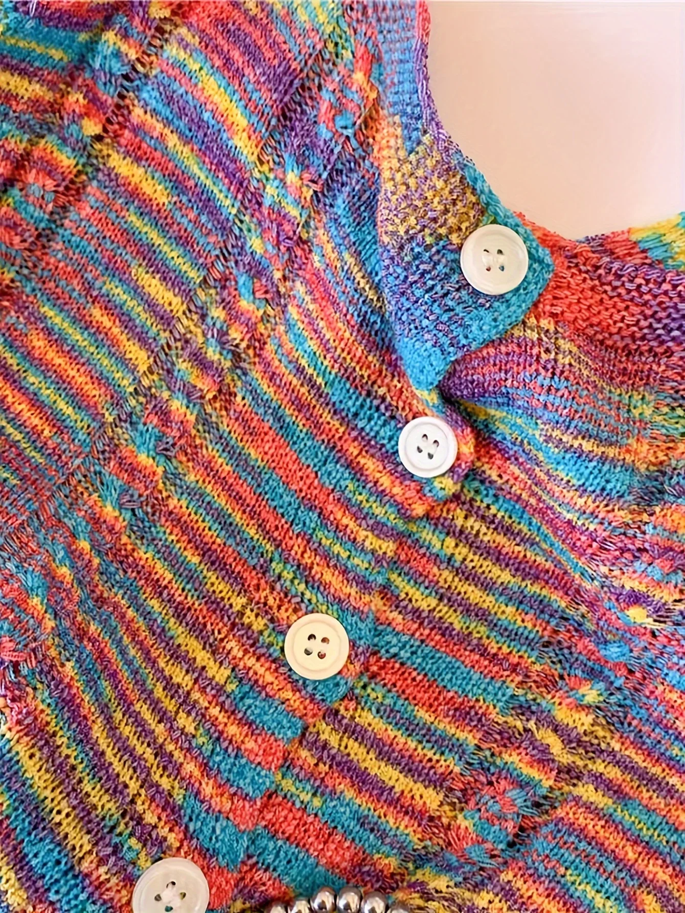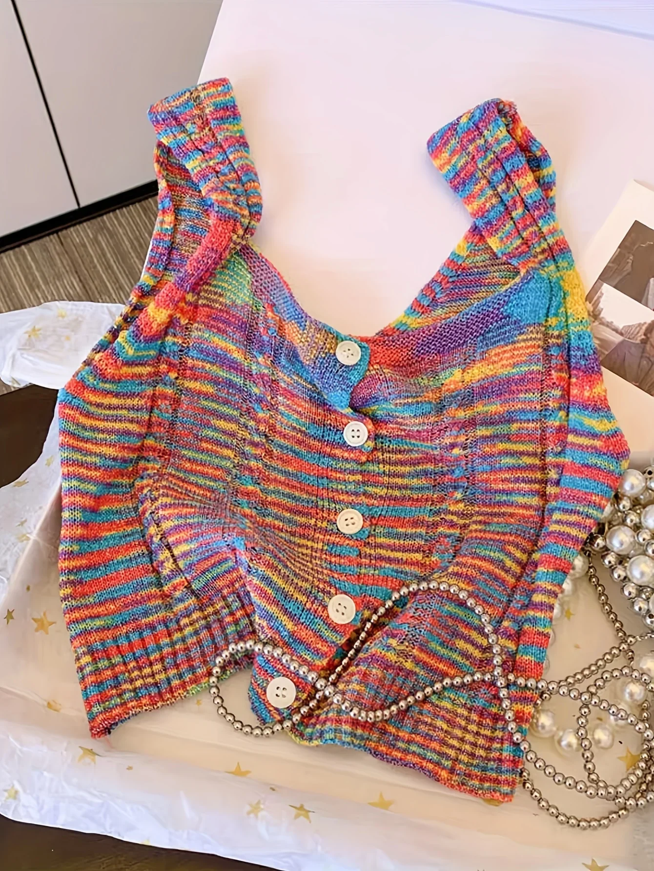 2025 New Tie Dye Button Front Knitted Top Vacation Sleeveless Tank Top For Spring & Summer Women’s Clothing Crop Top
