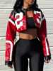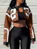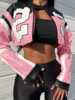 2025 New Women’s Artificial Leather Jacket PU Leather Short Jacket Digital Printed Fashion Streetwear Motorcycle Casual Jacket