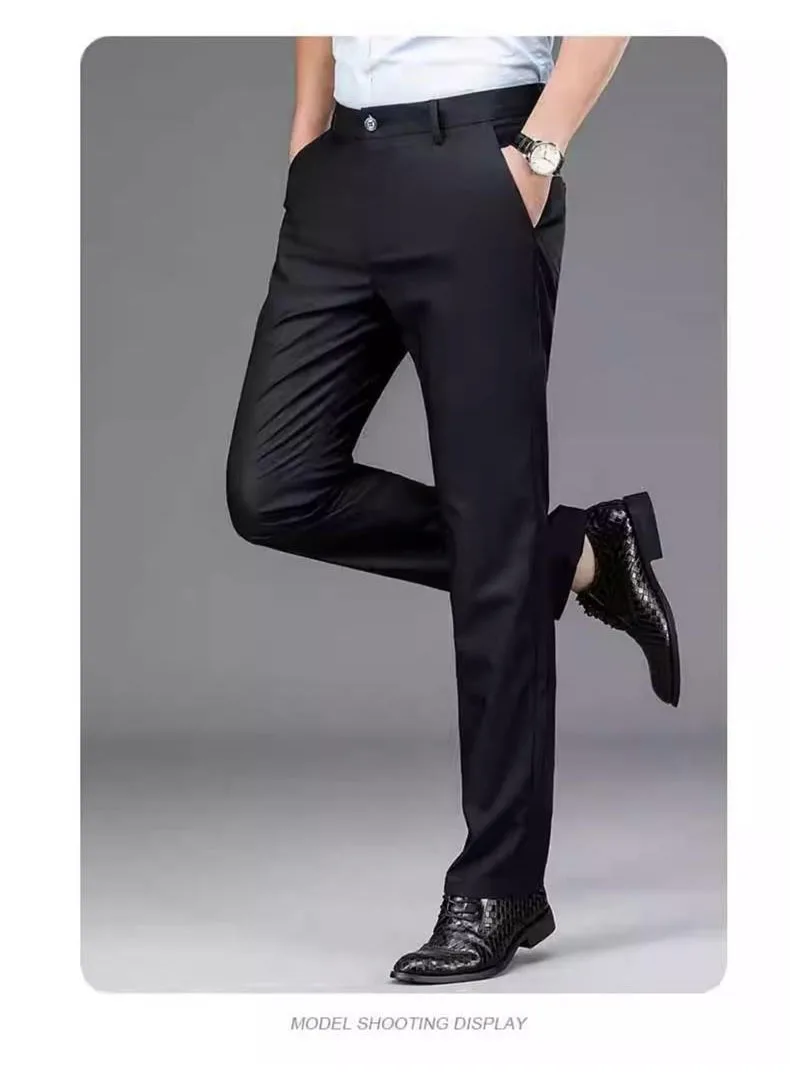 2025 Summer Autumn Thin Trousers Men Formal Dress Suit Pants Work Pants Quality Business Casual Pants Black Wine Red Long Pants