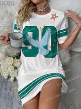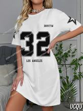 2025 Summer Women T-Shirt Dress Loose Casual 23 ENJOY FREEDOM Printed O-Neck Lady Short Sleeve Pullover Dresses Women Clothing