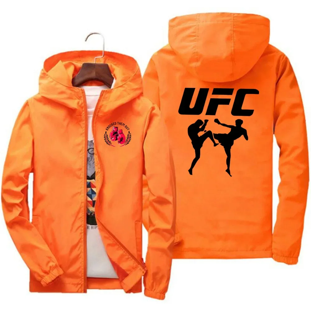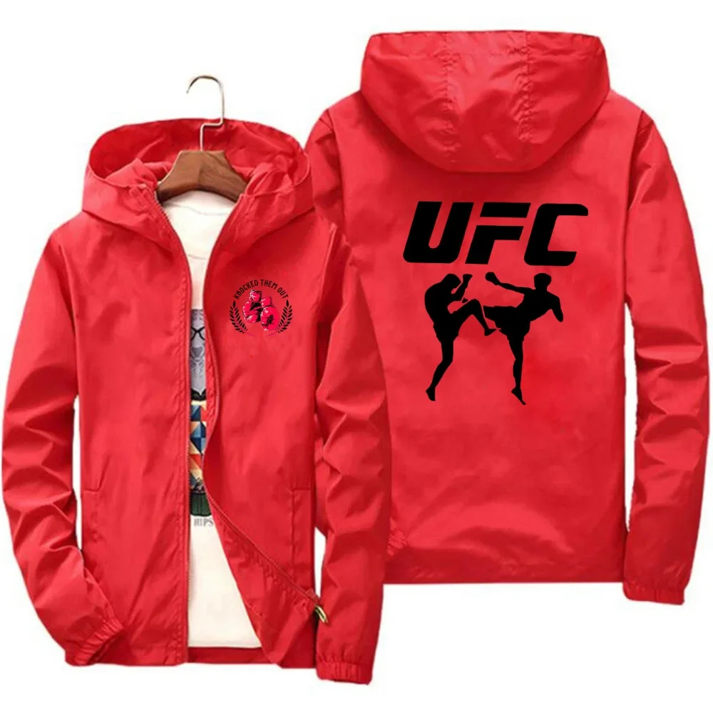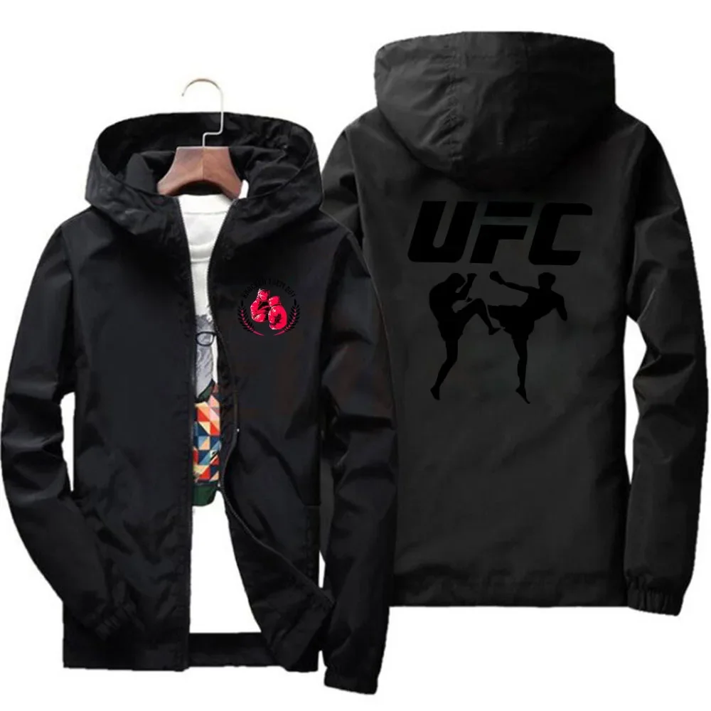 2025 UFC Fighting Men’s Fashion Jacket, Size S-7XL Windproof Zipper Hooded Jacket, Spring and Autumn Casual Outdoor Sweater