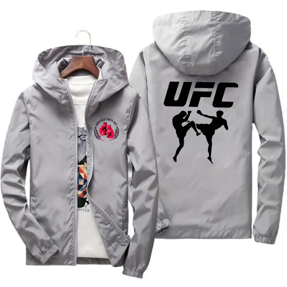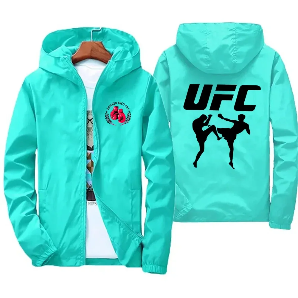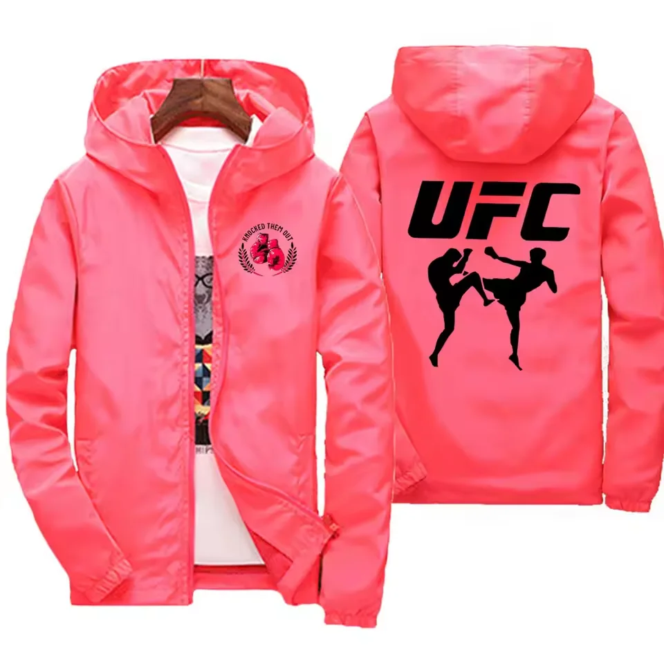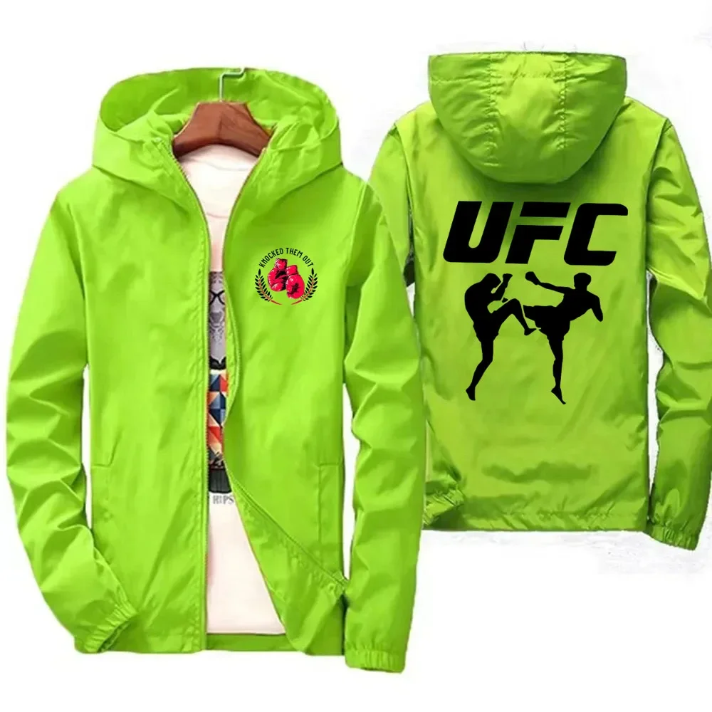 2025 UFC Fighting Men’s Fashion Jacket, Size S-7XL Windproof Zipper Hooded Jacket, Spring and Autumn Casual Outdoor Sweater