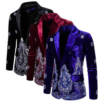 New Men Golden Velvet Embroidered Suit Luxury Single Button Jacket Homme Palace Wedding Stage Performance Dress Blazers Coat