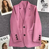 2025 Women Jacket New in Korean Fashion Small Suit Top Brown Suit Coat Clothes Loose Straight Temperament Slim Blazer for Women