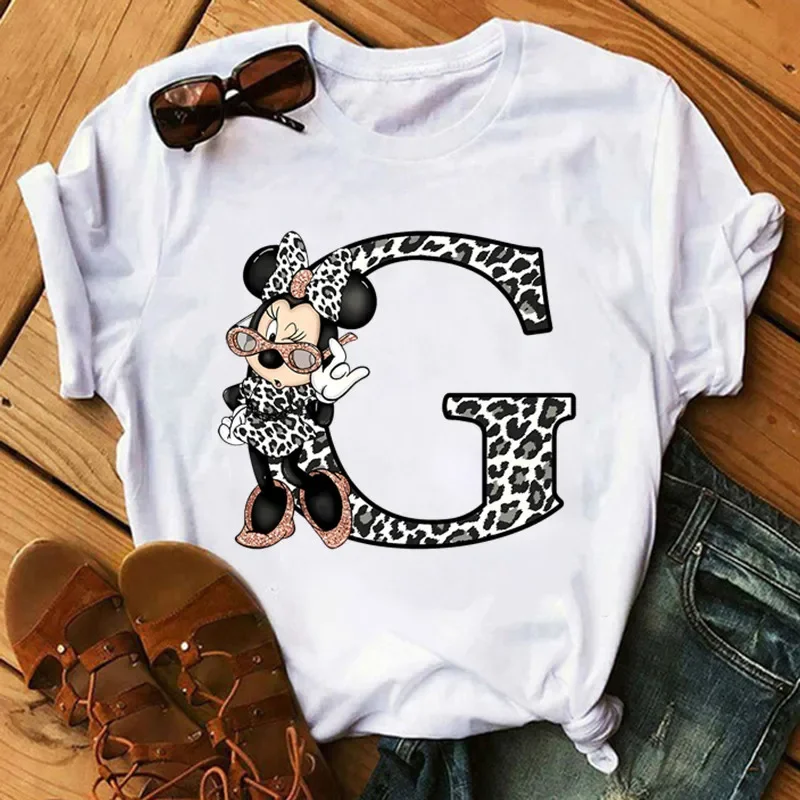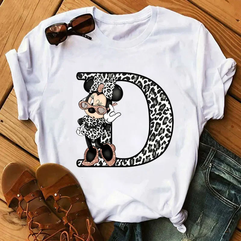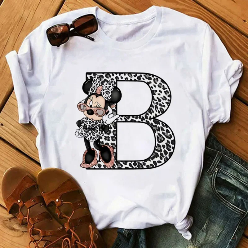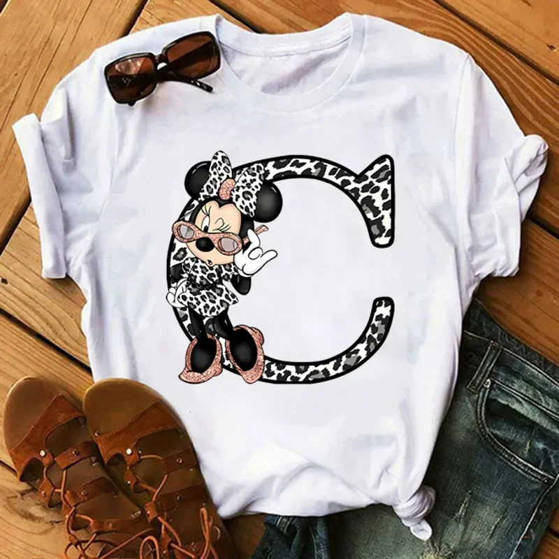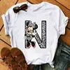 26 Letter Printed Women T-shirts Disney 2024 New Tops Casual Tee Summer Short Sleeve Graphic Female T Shirt for Women Clothing