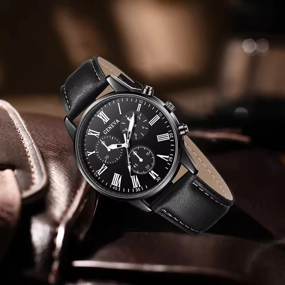 2PCS Men’s Quartz Watch Set Fashion Trend Digital Scale Dial Quartz Watch Bracelet Jewelry Set Suitable for Festival Gifts
