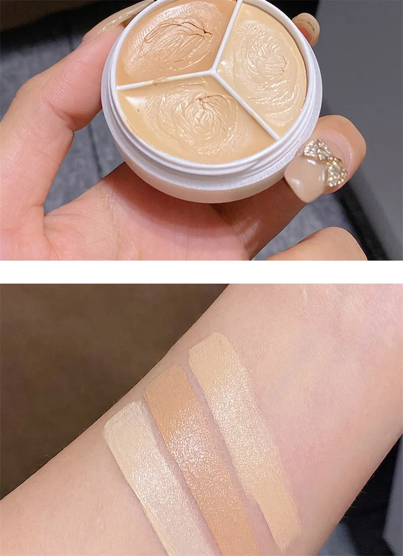3-Color Concealer Palette Cream Texture Covers Acne Marks Dark Circles Multifunction Face Makeup Lasting Brighten Face Cosmetics