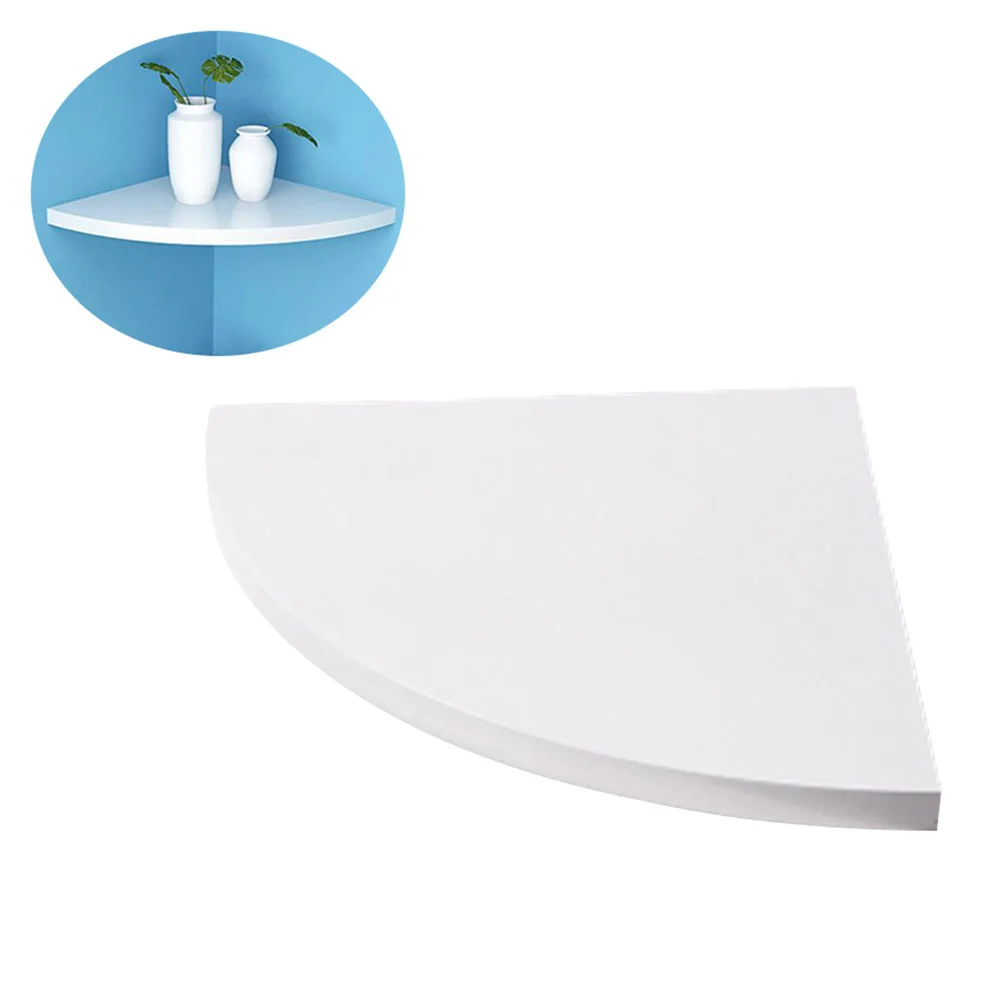 This is a round end design wall mounted corner shelf. Made of premium composite board, the shelf is for long lasting use. 3 tiers design for you to display various collections, clock, photo frame, books and other small items. It’s perfect for home use or office use.