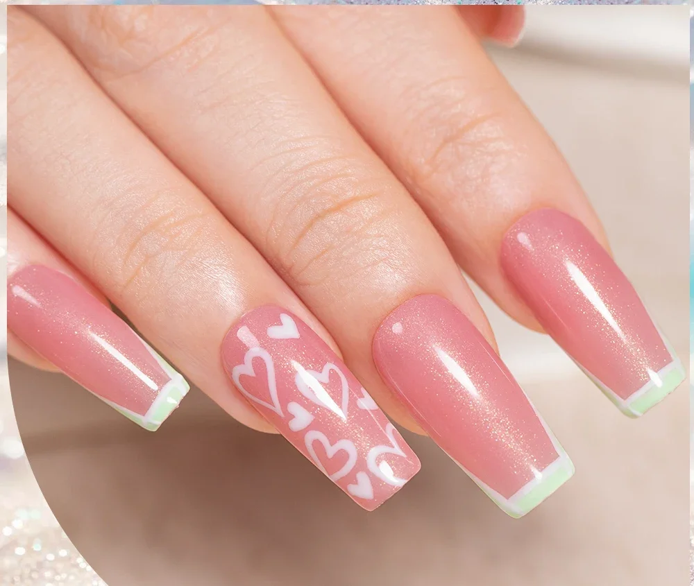 6.Put the nail form with poly nail gel to your nail. Cured by UV/LED lamp.