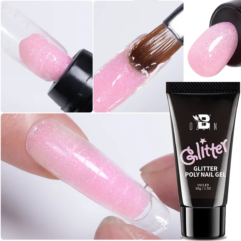 BOZLIN 30g Quick Poly Glitter Extension Gel Nail Polish Nude Milk White Color Finger Prolong Acrylic Crystal Construction Hard Gel Varnish