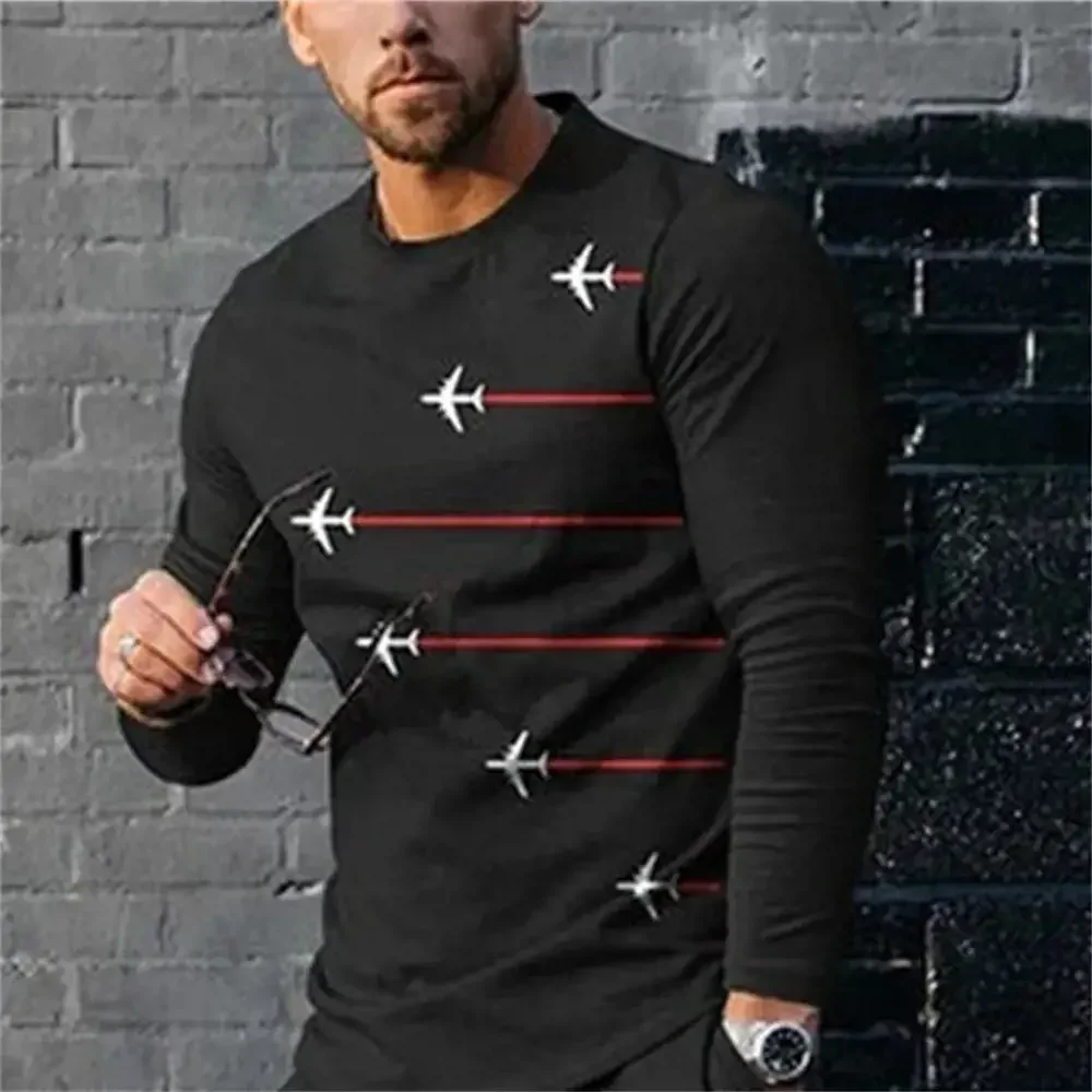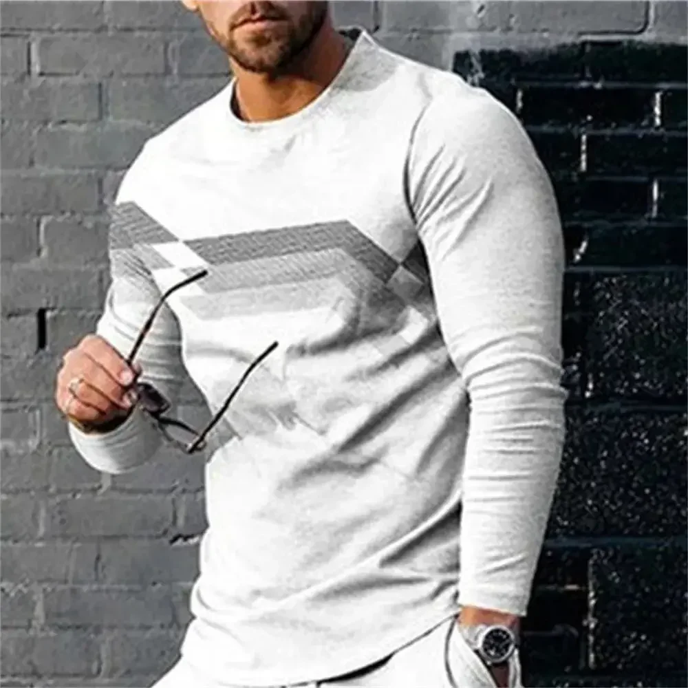 3D Digital Printing T-shirt Street Trend Long Sleeved O-neck Pullover T-shirt Large Men Long Sleeved Casual Sports Men Clothing