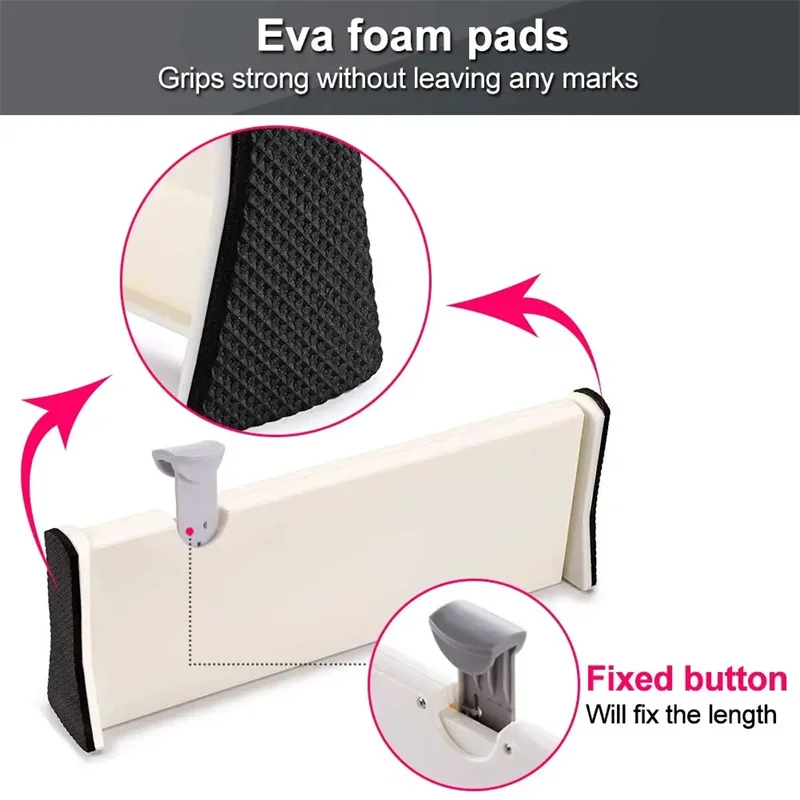 The ends of these cutlery drawer organizers are covered with high quality Eva foam sponges so they do not scratch or damage the inner walls of the drawer,the foam edges keep the kitchen drawer organizers sturdily in place.