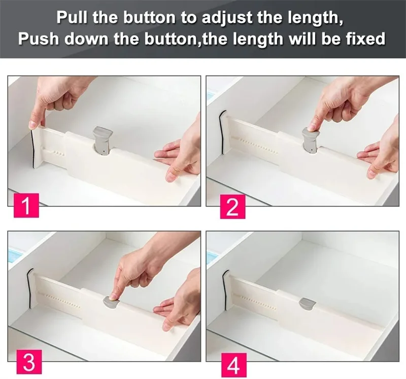 These drawer organizers can be installed in any drawer of your house. For example, kitchen, makeup drawer ,bathroom and bookcase and shelf dividers!