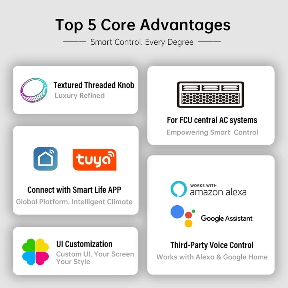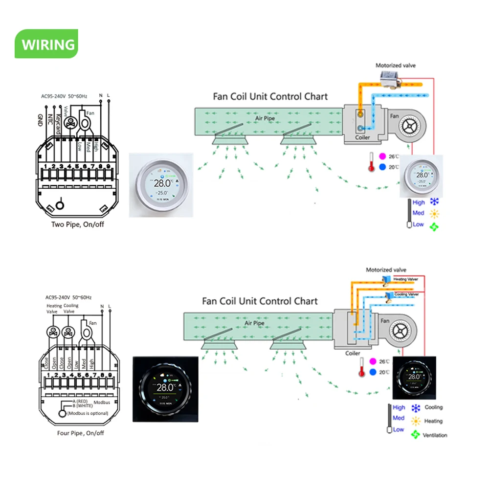 4 Pipe Tuya WiFi Smart Central Air Conditioner Thermostat Fan Coil Unit Voice Temperature Controller Alexa Google Assistant