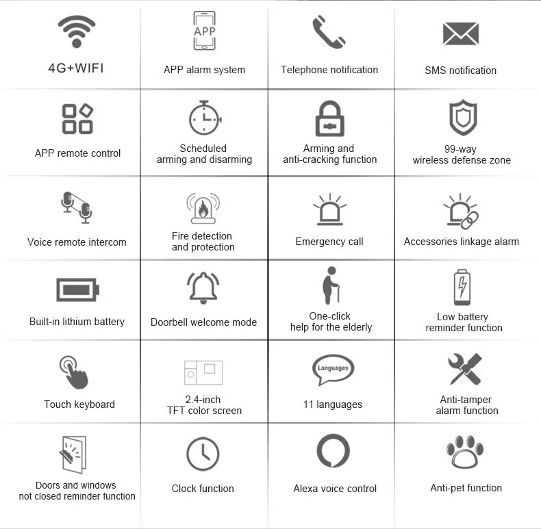 1、The alarm hosts for all PG-105 in this link are all WIFI+4G GPRS versons. Tuya Smart Life app control.
