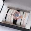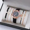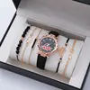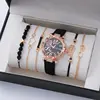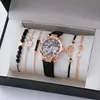 6PCS Set Watch For Women Luxury Leather Analog Ladies Quartz Wrist Watch Fashion Bracelet Watch Set Female Relogio Feminino