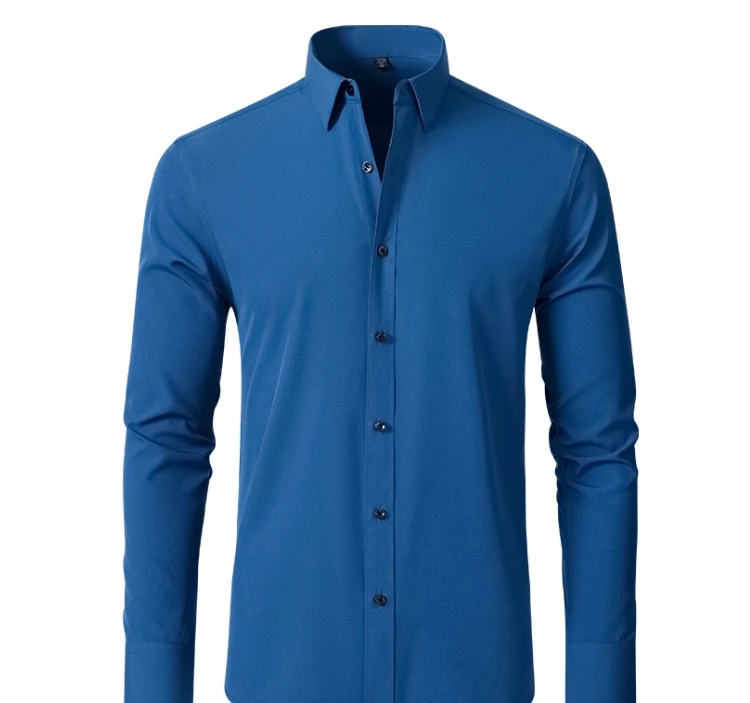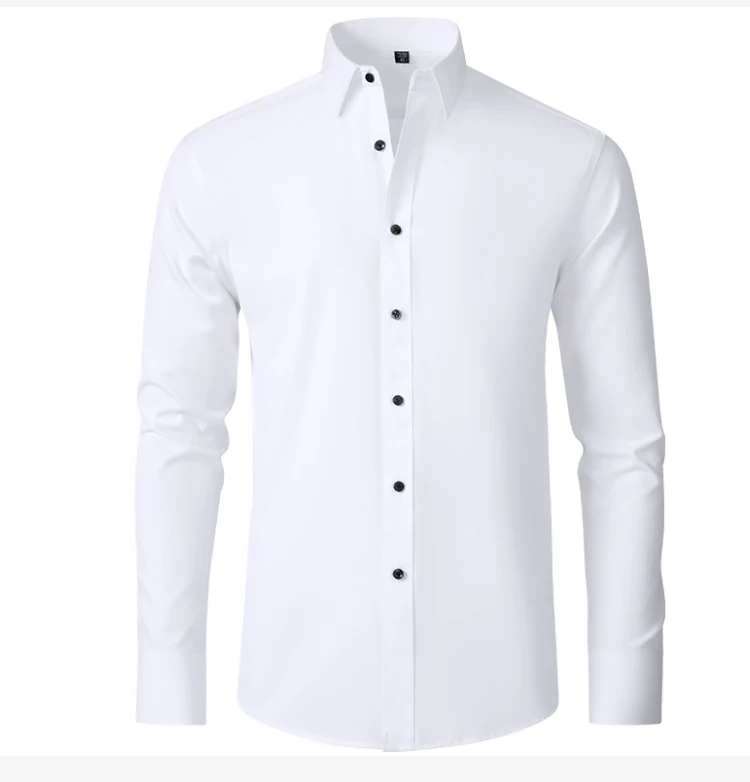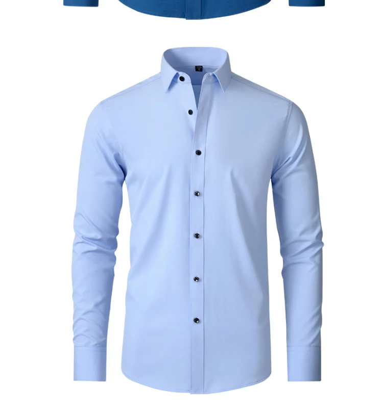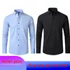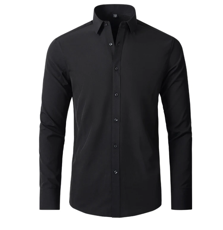 6xl New summer black men’s shirt elastic force non-iron long-sleeved business casual shirt solid color mercerized vertical