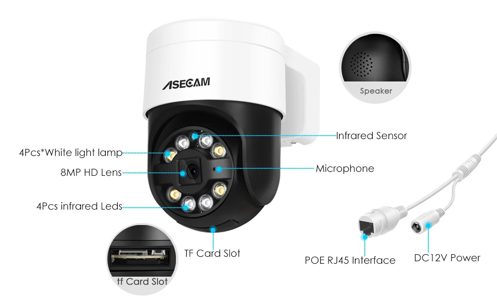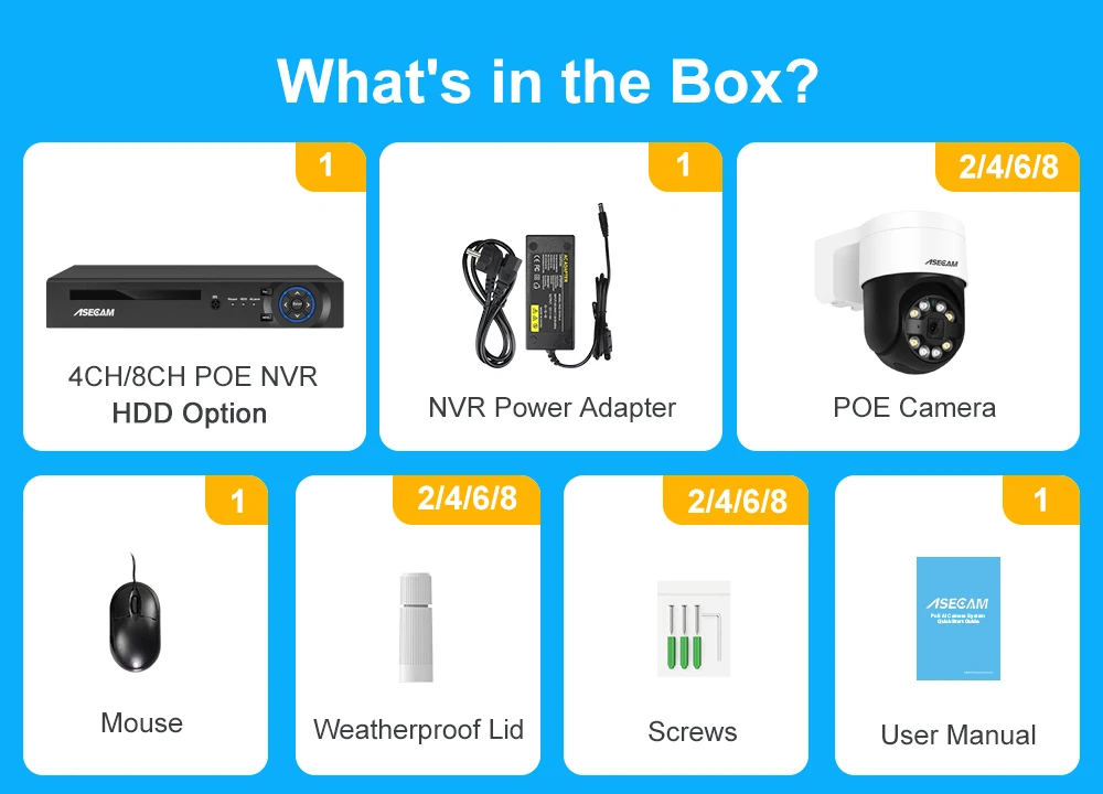 ASECAM 8MP 4K PoE NVR security camera system supports simultaneous live feed and 24/7 recording for all cameras. the security IP camera can not only record just motion clips, but also every single minute of what happened. When something abnormal is detected, you’ll get notified instantly. You will never miss anything.
