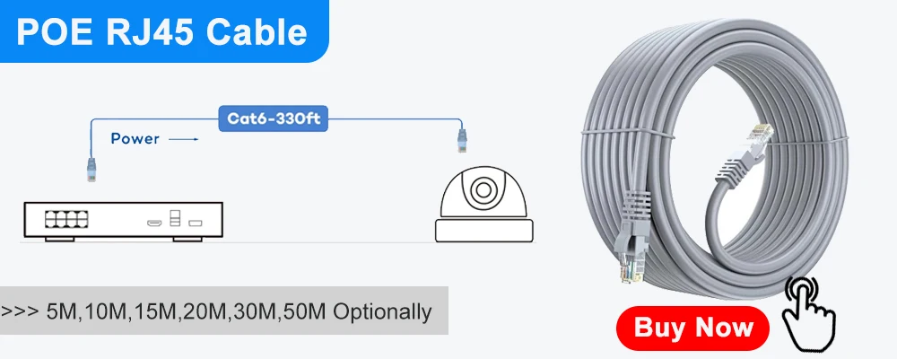 6.Installation is very simple, plug and play, IP cameras only need a single Cat5e ethernet cable to connect it to a compatible NVR for video, power and a stable network connection.