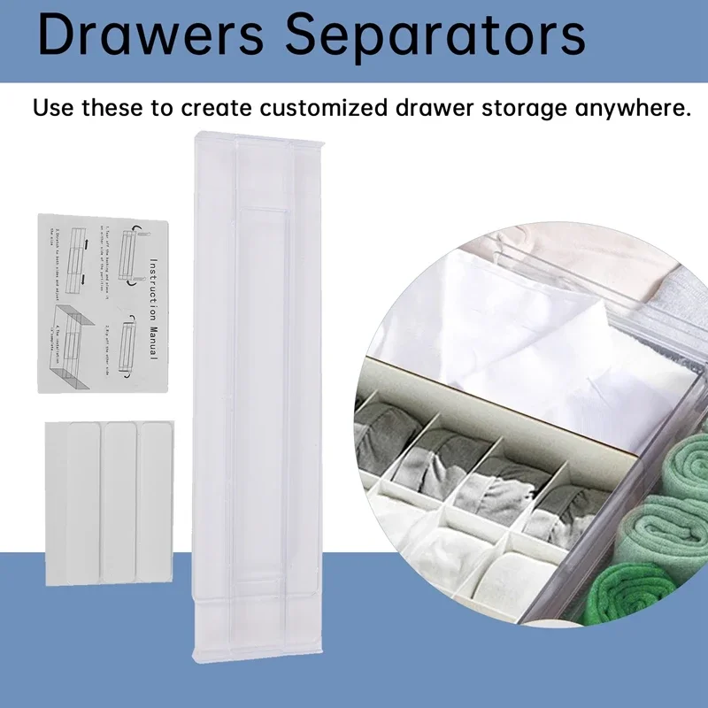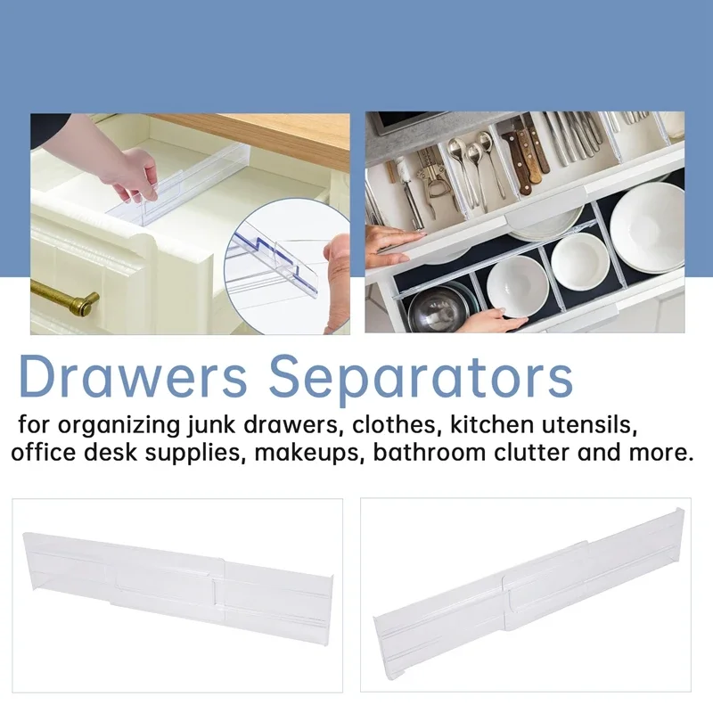 Multipurpose drawer dividers: Use these to create customized drawer storage anywhere. perfect for keeping drawers organized and items easy to find what you need. Perfect for organizing junk drawers, clothes, kitchen utensils, office desk supplies, makeups, bathroom clutter and more.