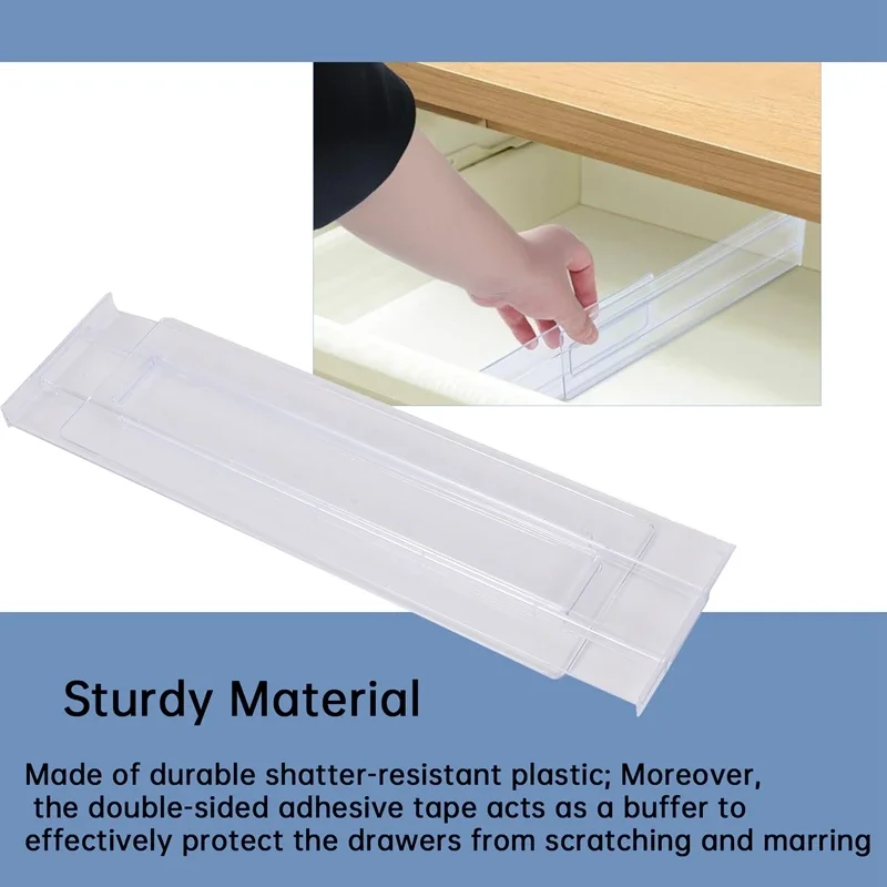 Sturdy Material: Made of durable shatter-resistant plastic; Moreover, the double-sided adhesive tape acts as a buffer to effectively protect the drawers from scratching and marring. The sturdy and durable material will last long, providing convenience and comfort to you. They will play a greater role of organization and storage.